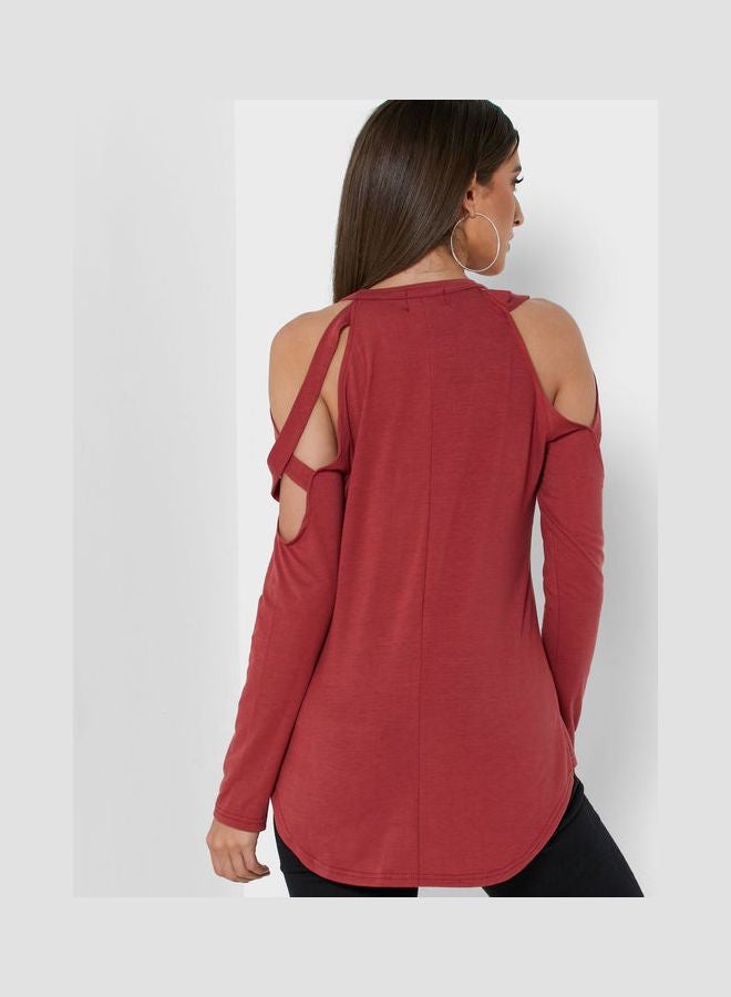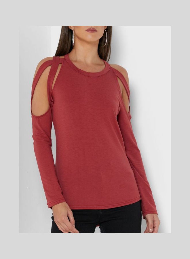 | nameOriginal | Women Round Neck Cutout Detail T-Shirt Red |
