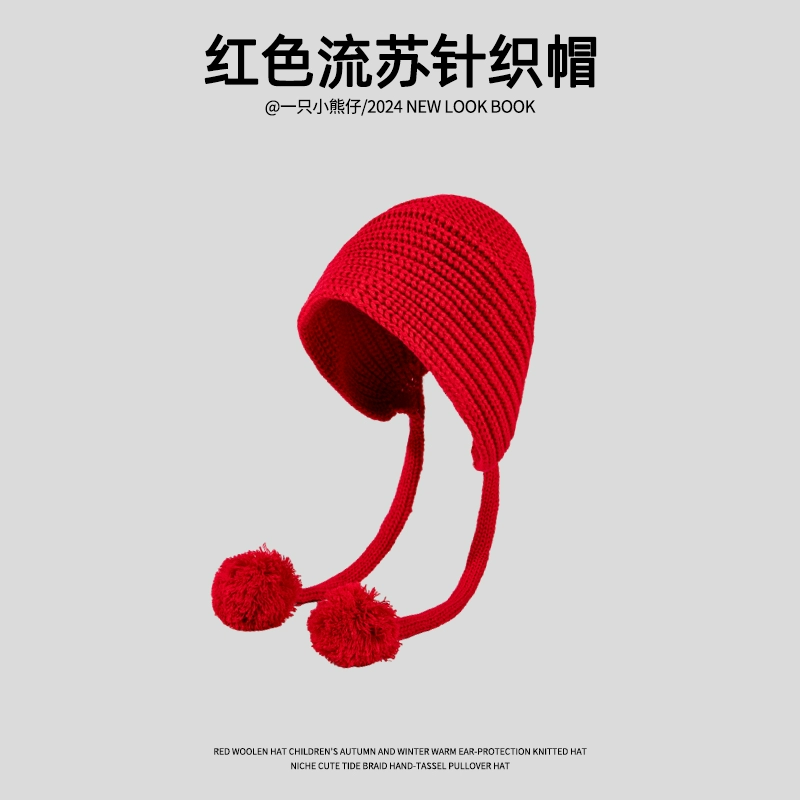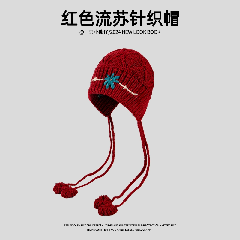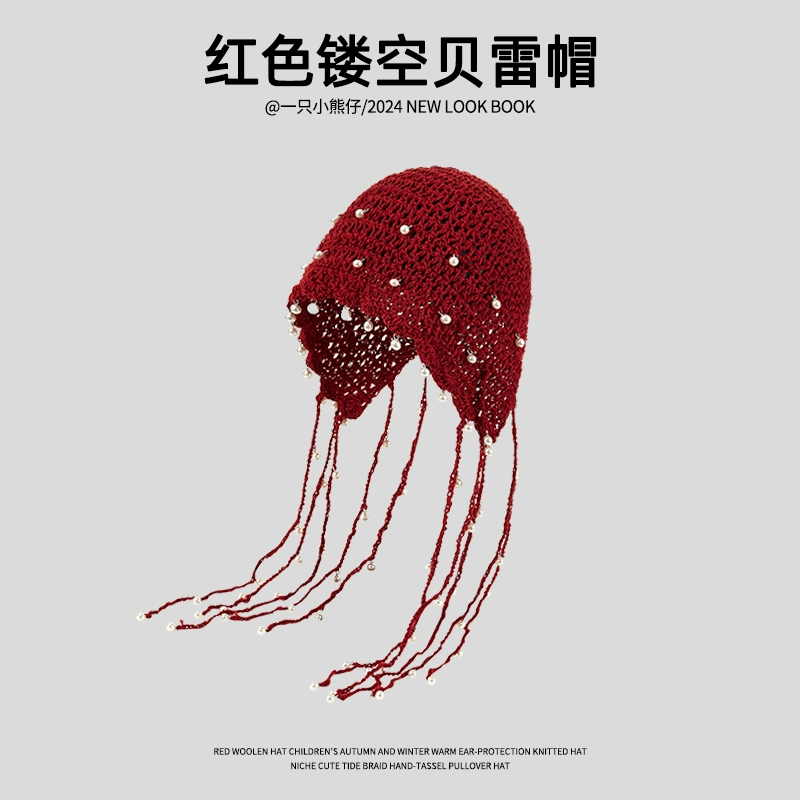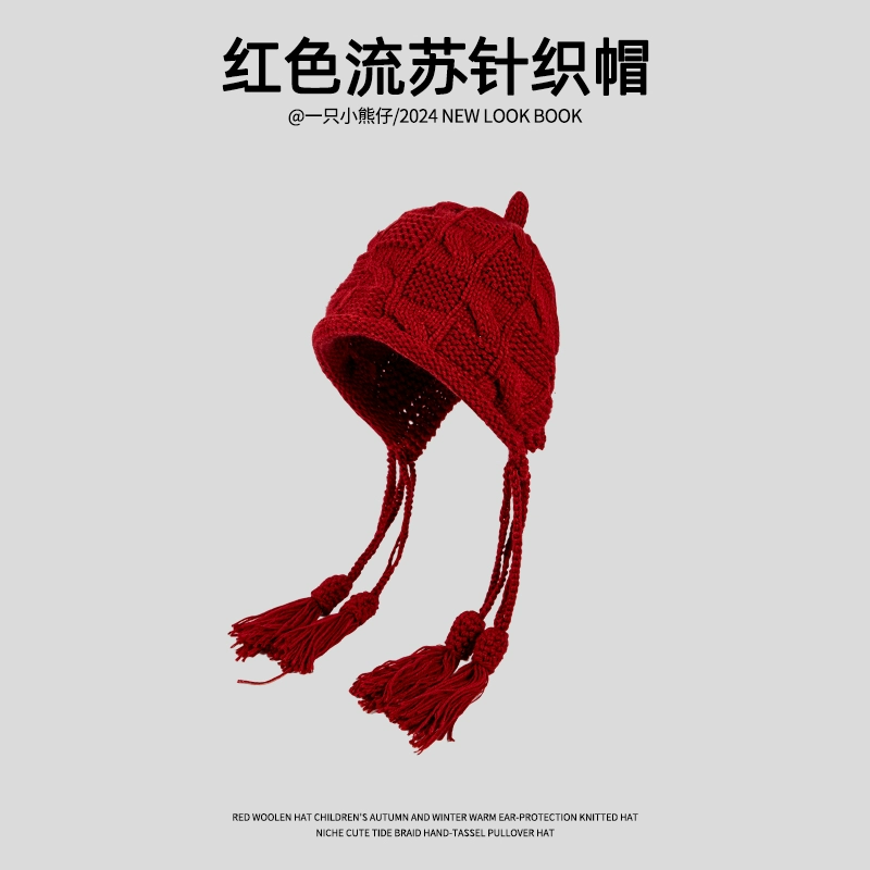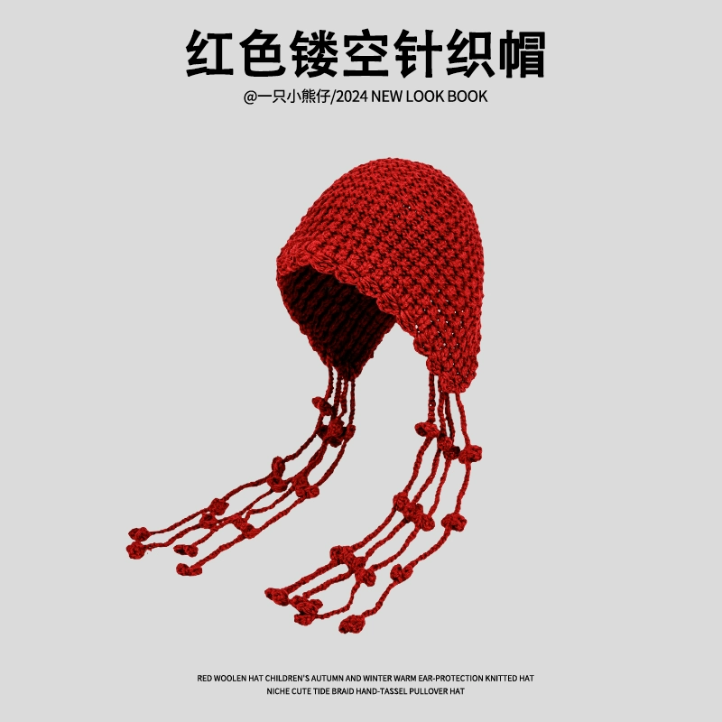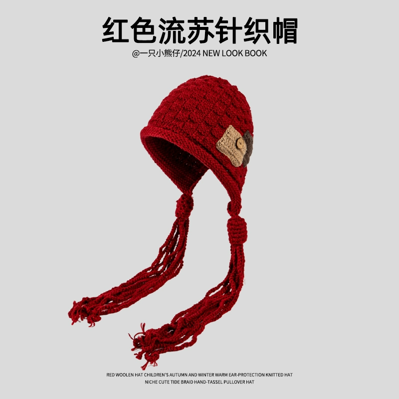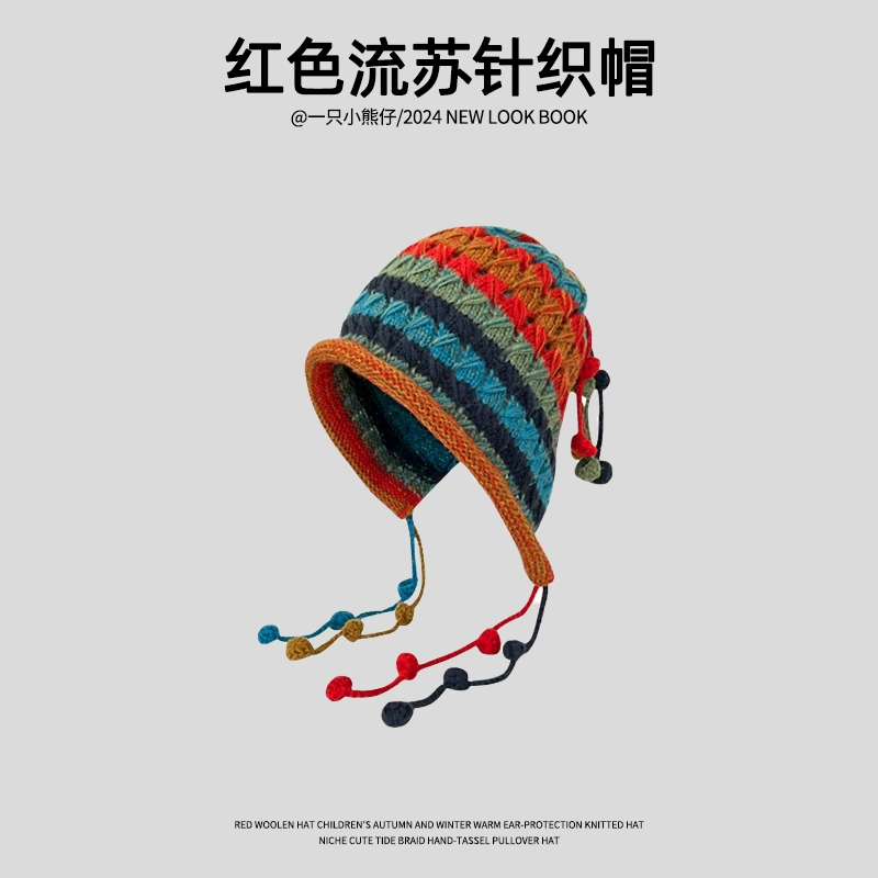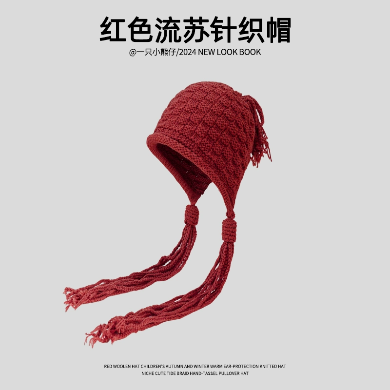| nameOriginal | Red tassel knitted women's retro woolen cap |