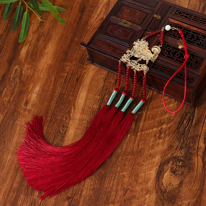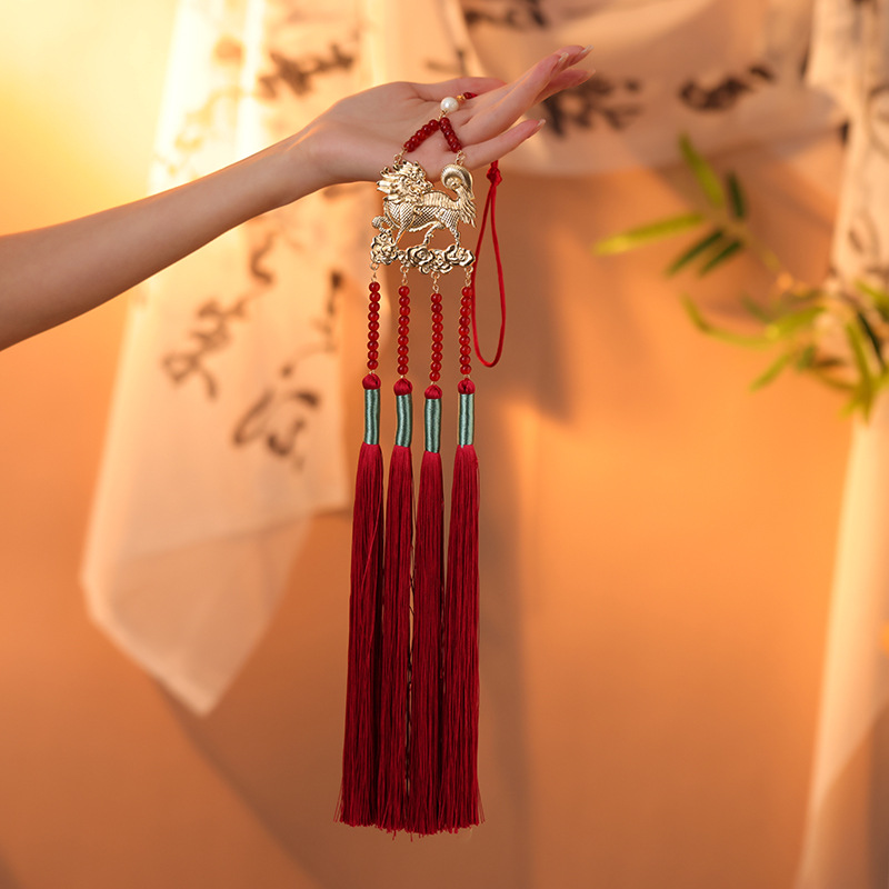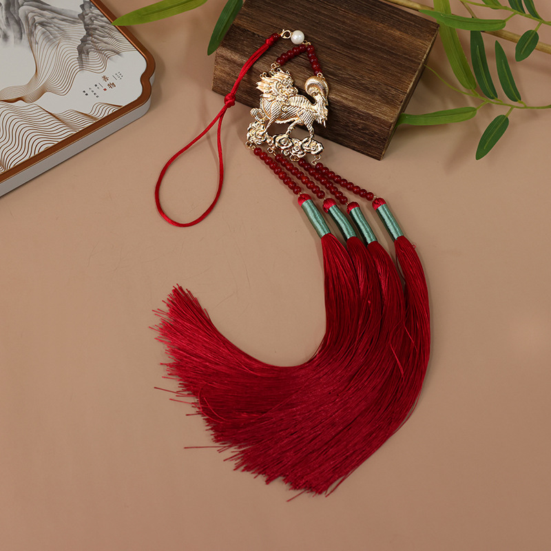 | nameOriginal | Red tassel maxi dress long non-step accessories ancient style hanfu placket red long tassel Kirin waist chain pendant |