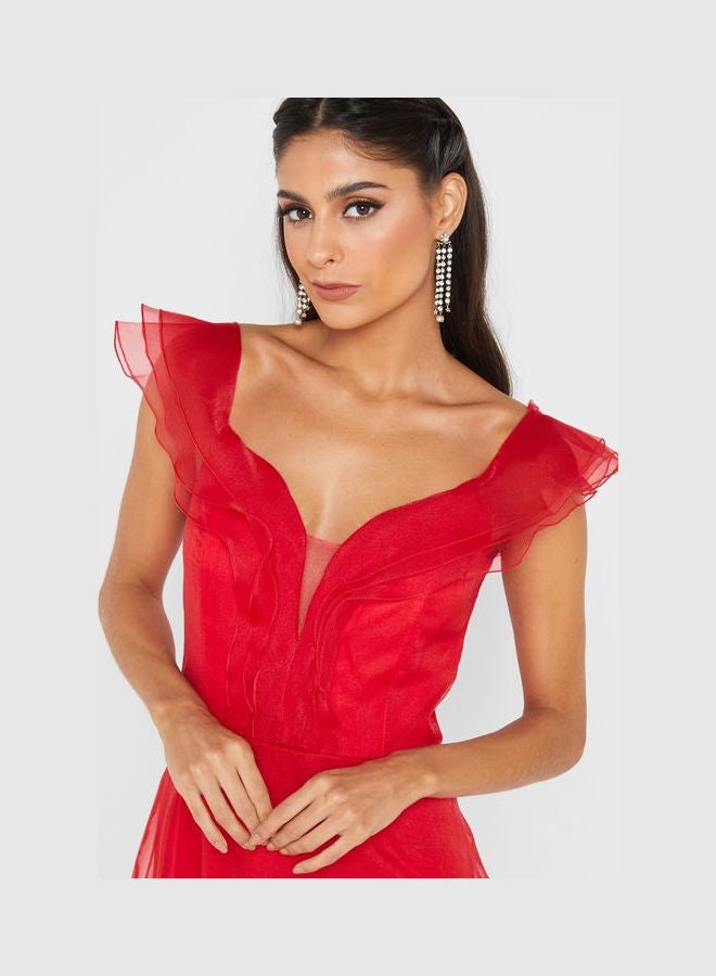 | nameOriginal | Off-Shoulder Tulle Dress Red |