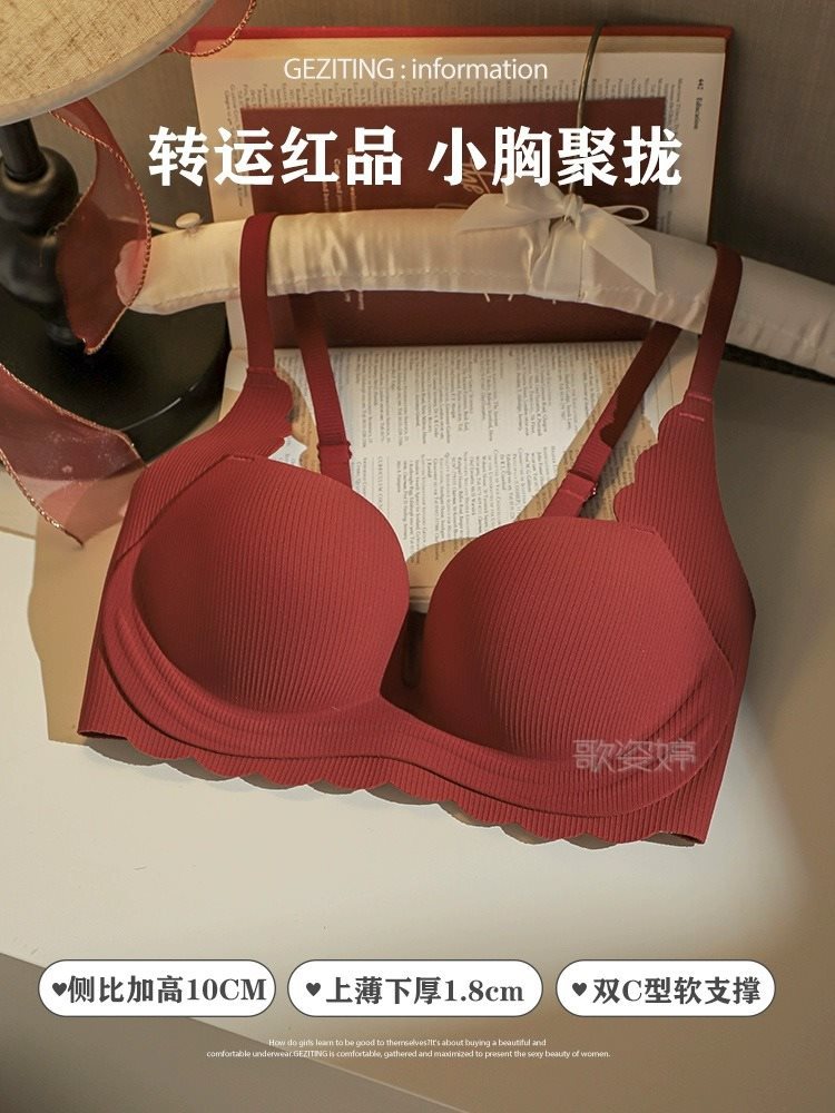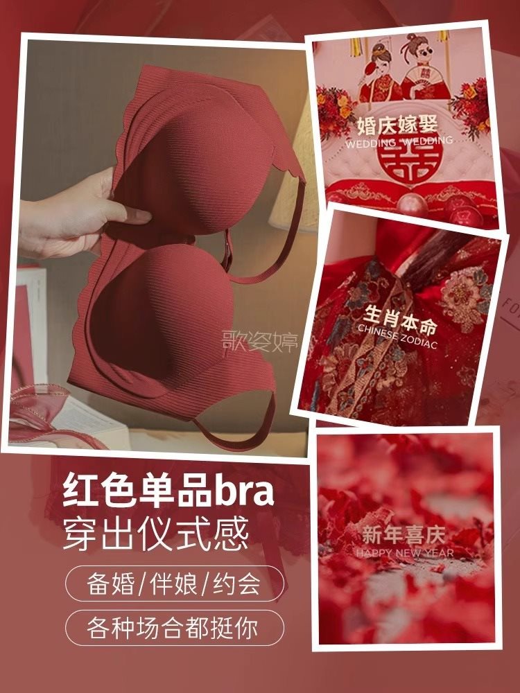| nameOriginal | Red Underwear Women's Wedding Bride's Small Chest Gathering Large No-mark No-steel Rings This Life Year Bra Set Adjustable |