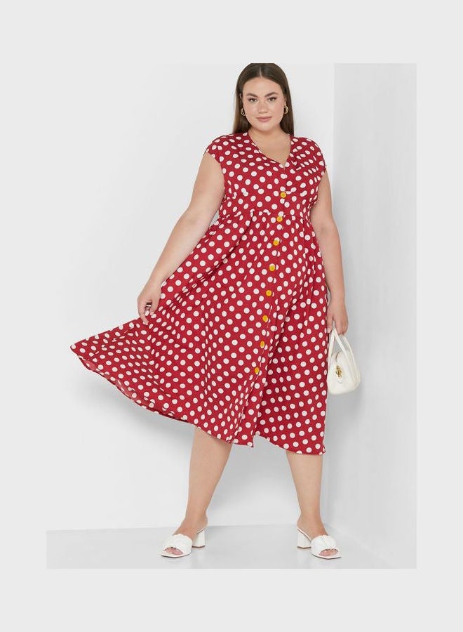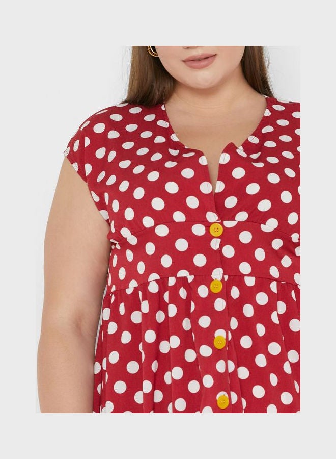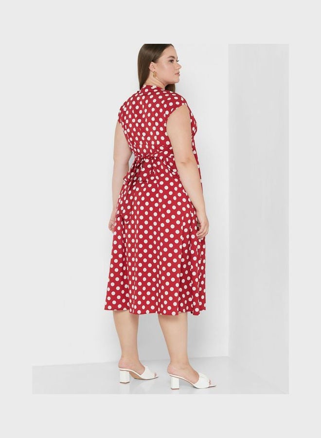 This dress is a versatile choice that can take you from work to a night out. It features delicate accents, a classic color, and a clean design. The V-neck and sleeveless cut are flattering, while the contrast polka dot print adds a touch of playfulness. The self-tie belt detail cinches at the waist for a flattering silhouette, and the secure button down closure at the front ensures a comfortable fit.