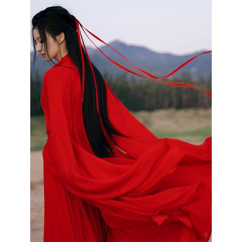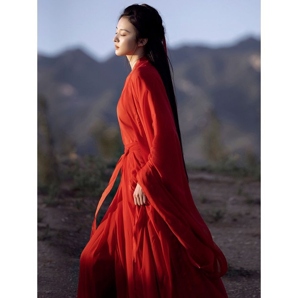 | nameOriginal | Red Wei Jin style martial arts ancient costume Hanfu female Chinese style handsome cross collar ancient style skirt dance performance dress suit |