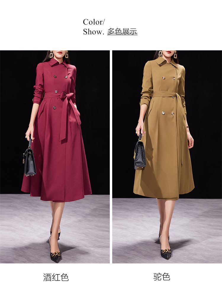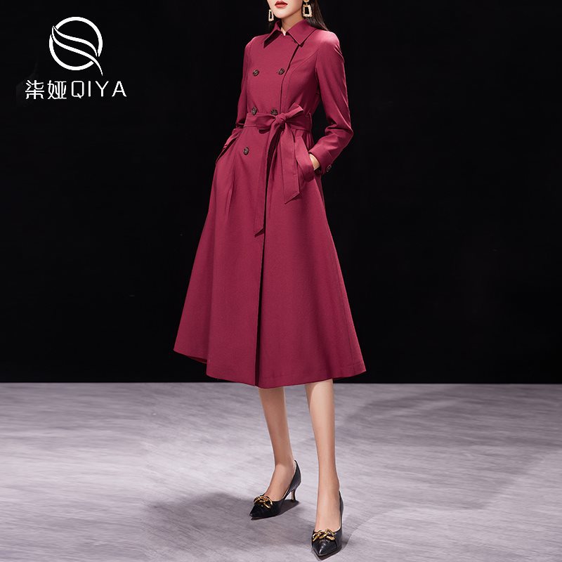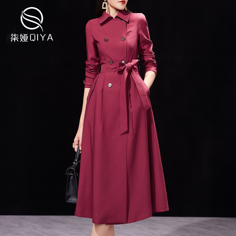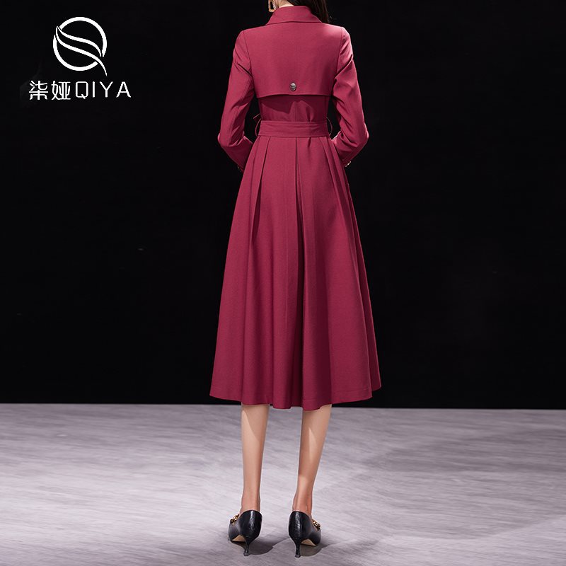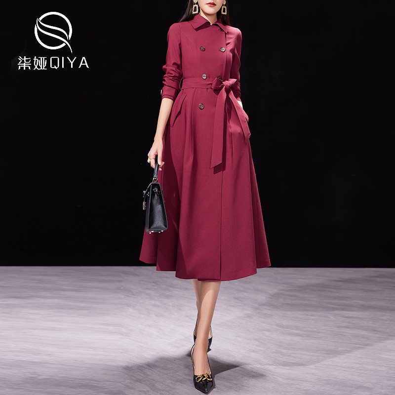 Red windbreaker coat women's spring and autumn 2024 new temperament waist slimming mid-length autumn British wind coat