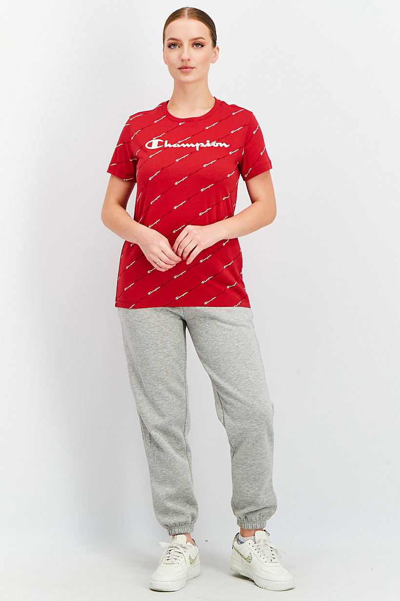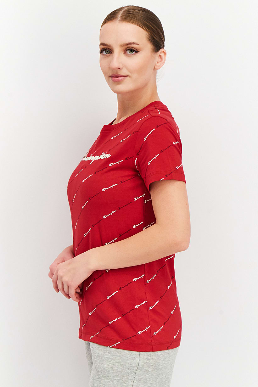 | nameOriginal | Women Regular Fit Short Sleeve Brand Logo Top, Red |