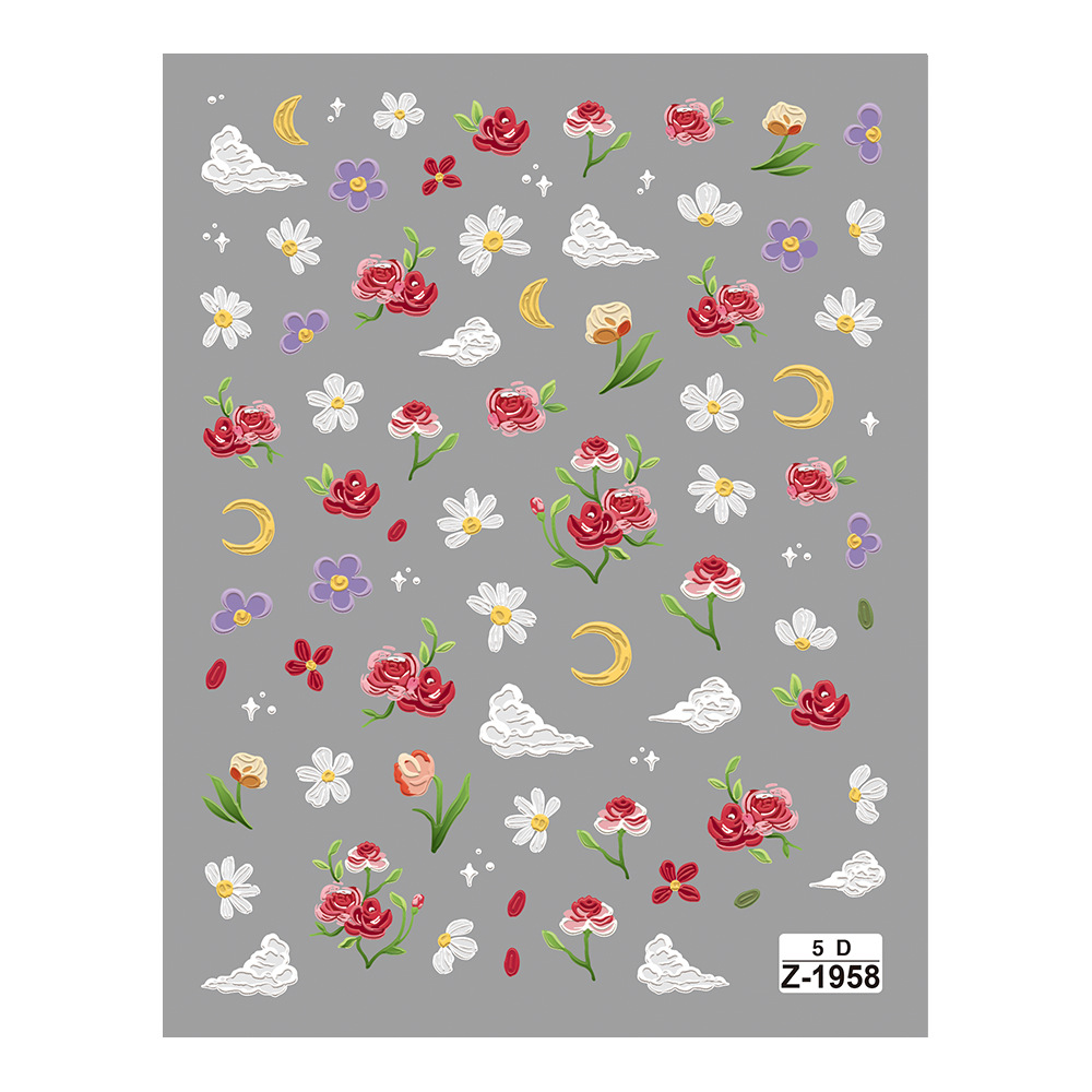 | nameOriginal | Redanco new 5D embossed rose daisy nail stickers three-dimensional adhesive nail stickers wholesale |