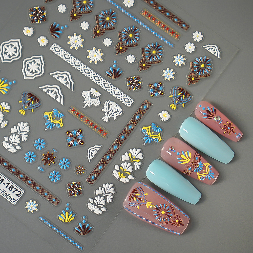 | nameOriginal | Redanco new 5D relief nail art stickers Bohemian three-dimensional adhesive nail stickers jewelry wholesale |