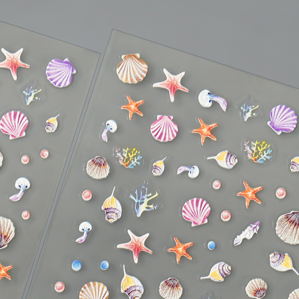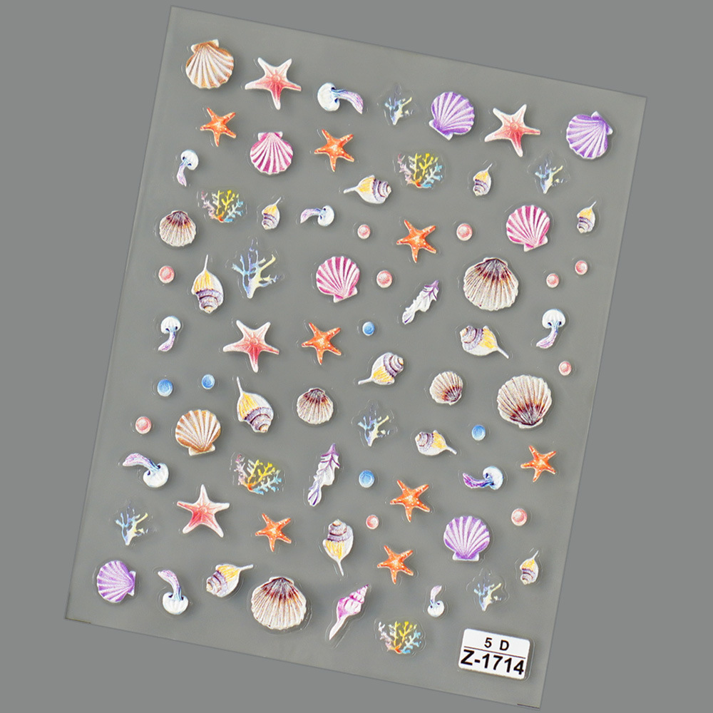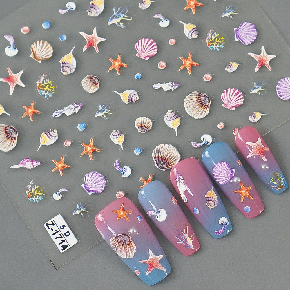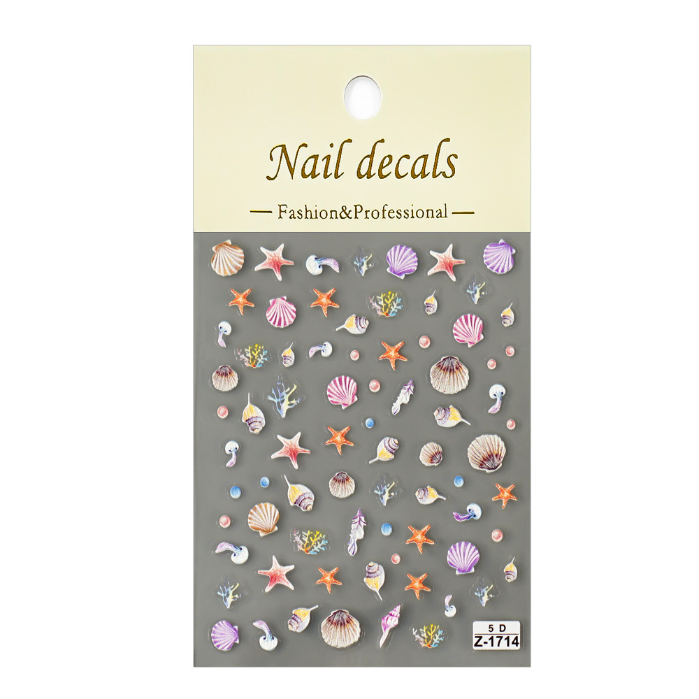 Redanco new 5D relief nail art stickers seahorse starfish shell three-dimensional adhesive nail stickers jewelry wholesale