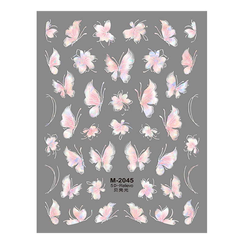 | nameOriginal | Redanco new 5D relief shell light powder yellow butterfly nail art stickers three-dimensional adhesive nail decals wholesale |