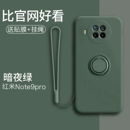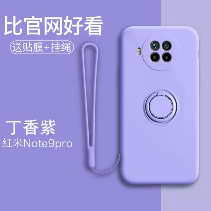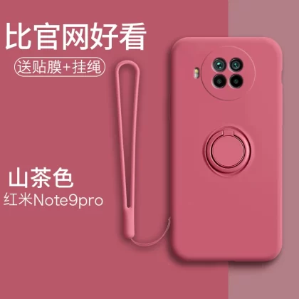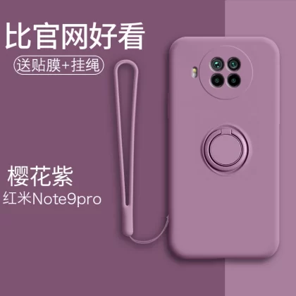 Redmi note9 mobile phone case liquid silicone all-inclusive 4g car magnetic anti-fall soft shell Pro simple 5g ring holder note men and women couple model note9pro trendy internet celebrity ultra-thin protective case
