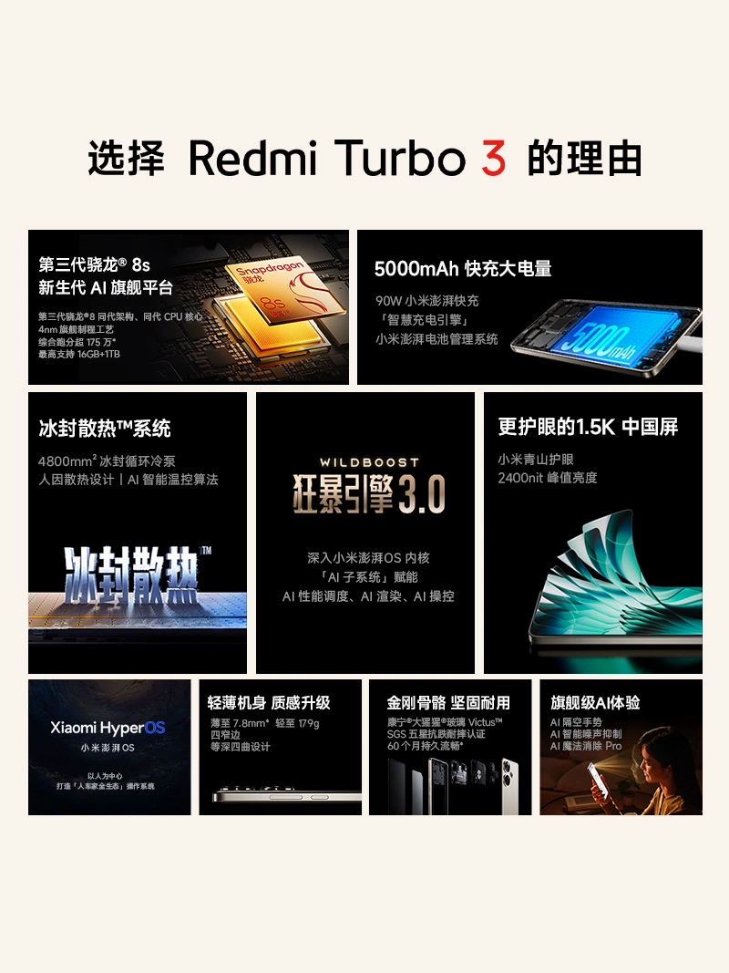 | nameOriginal | Redmi Turbo 3 Xiaomi Redmi turbo3 Snapdragon 8s gaming note memory miui smart note phone Xiaomi official flagship store official website |