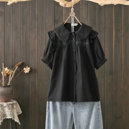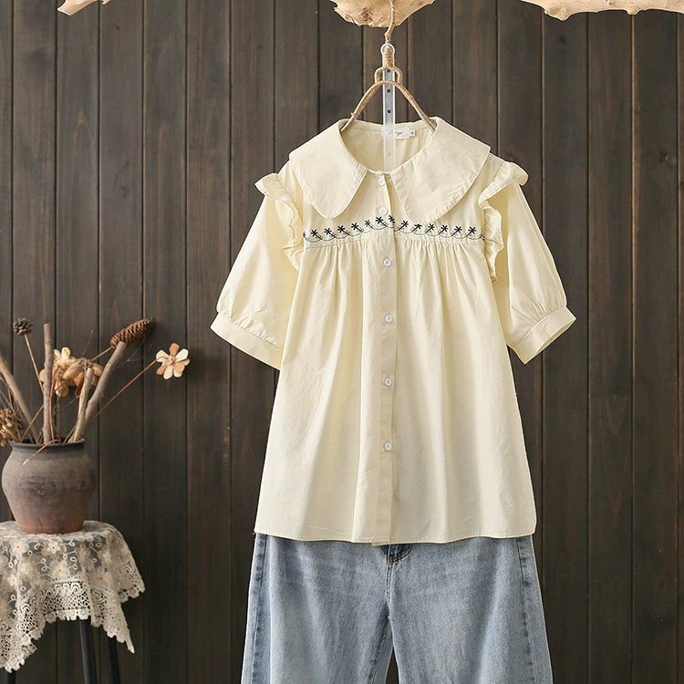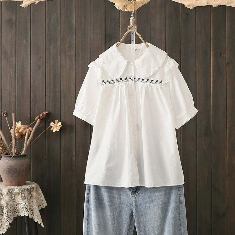 Reducing age by 200 pounds, fresh short-sleeved embroidered earrings