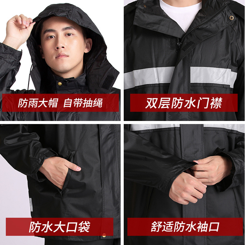 | nameOriginal | Reflective Black Poncho Adult Split Raincoat Rain Pants suit Traffic Law Enforcement Urban Management Outdoor Riding Factory in stock |