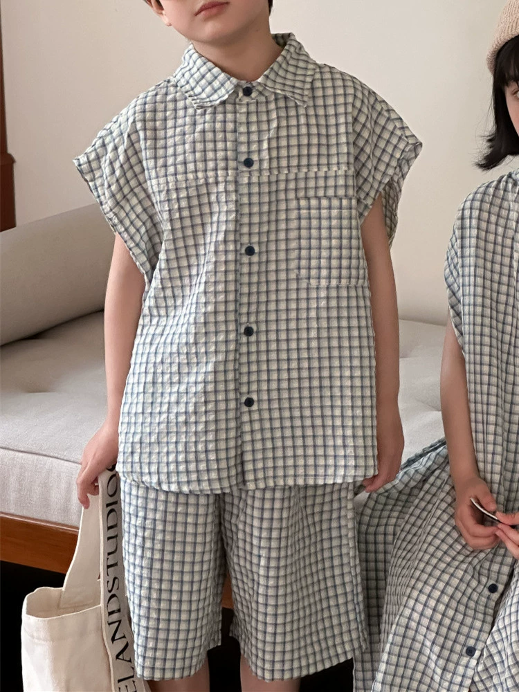 | nameOriginal | Refreshing light blue plaid summer sleeveless cotton skirt |
