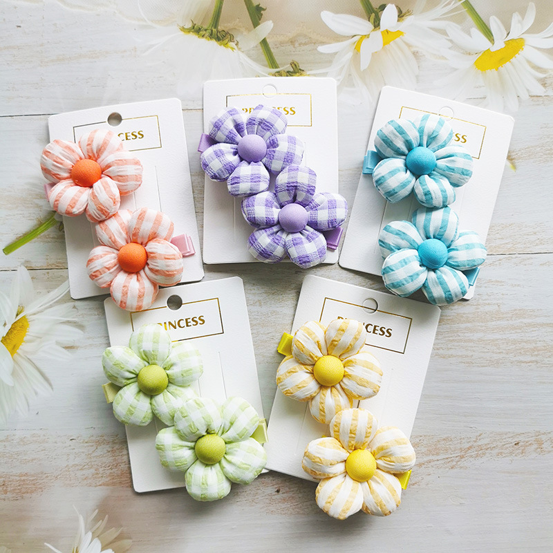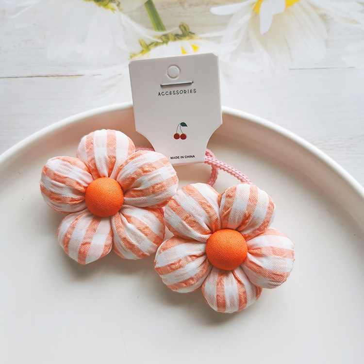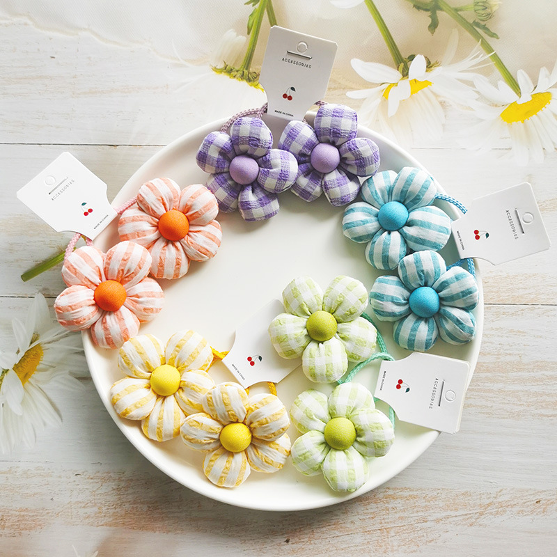 | nameOriginal | Refreshing Plaid flower headdress cotton five petal flower hair band Girls hair rope little girl cute hairpin clip |