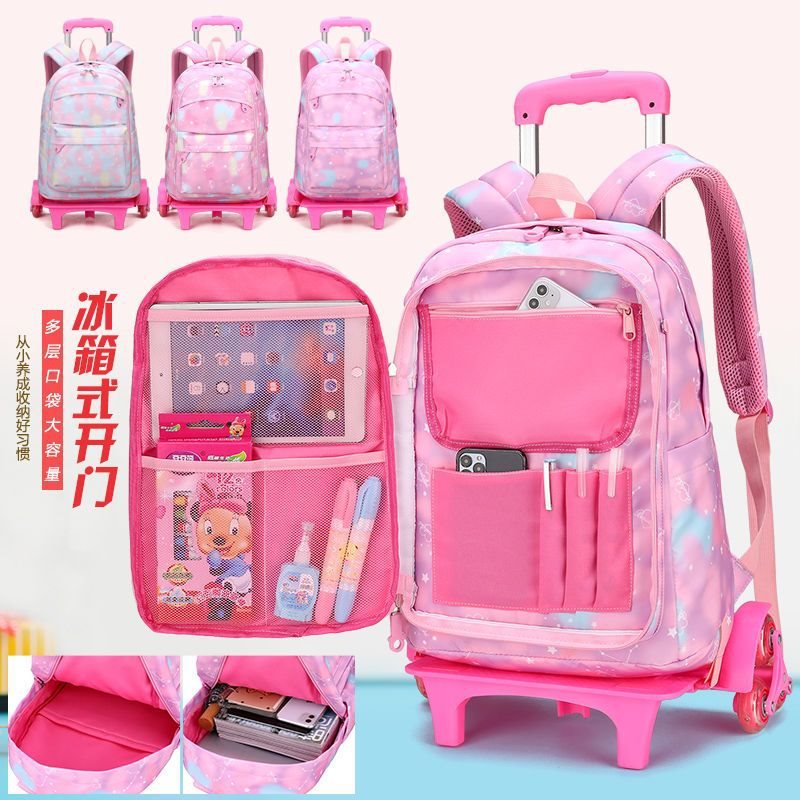 Refrigerator Open Door Children’s Trolley Schoolbag Female Primary School Students Grade 2-4-6 Waterproof Large Capacity Multi-compartment Stair Climbing