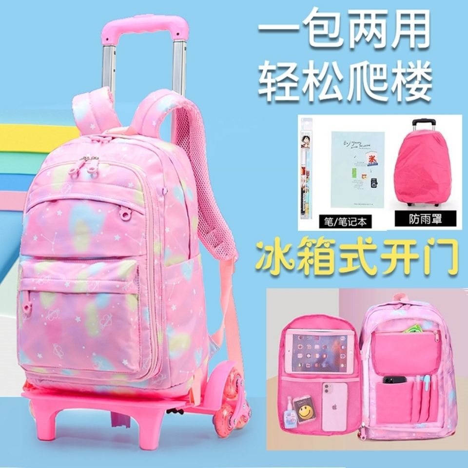 Refrigerator Open Door Children's Trolley Schoolbag Female Primary School Students Grade 2-4-6 Waterproof Large Capacity Multi-compartment Stair Climbing