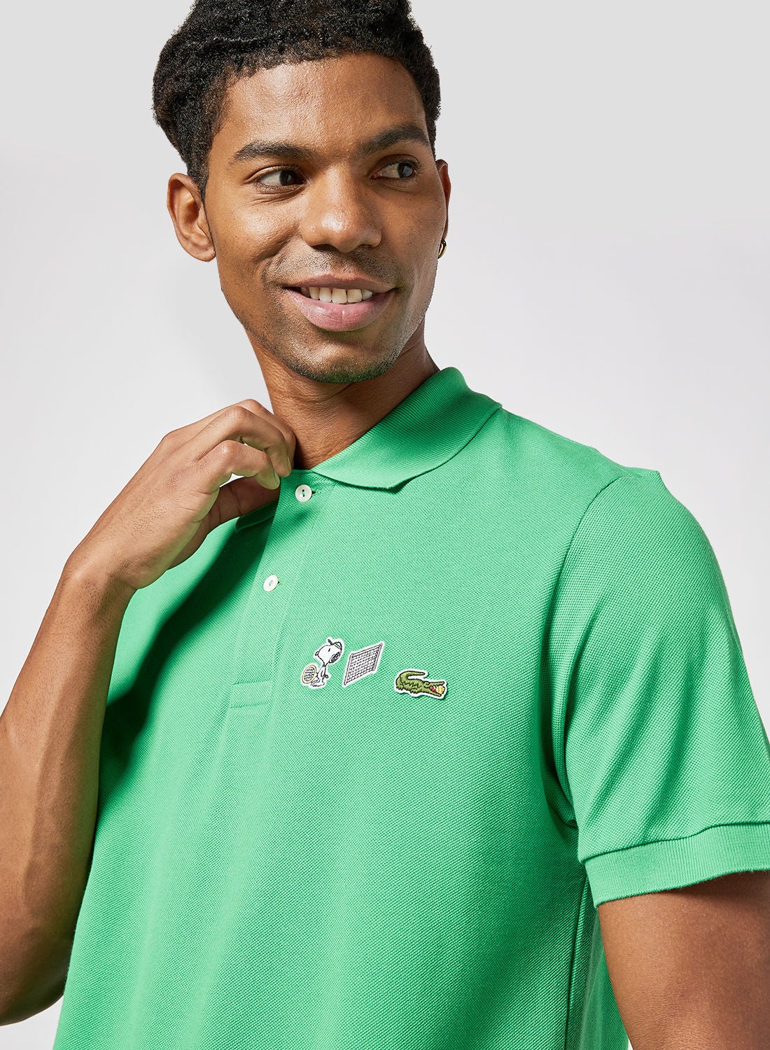 This product is a result of the collaboration between Lacoste and Peanuts. It is made of soft organic cotton petit piqué fabric that provides comfort. The shirt features a collar neck, short sleeves, and a button-down front placket. The Lacoste logo branding detail adds to its style. To maintain its quality, it is recommended to follow the care label instructions while washing. The model in the picture is approximately 187cm tall and is wearing a size M.