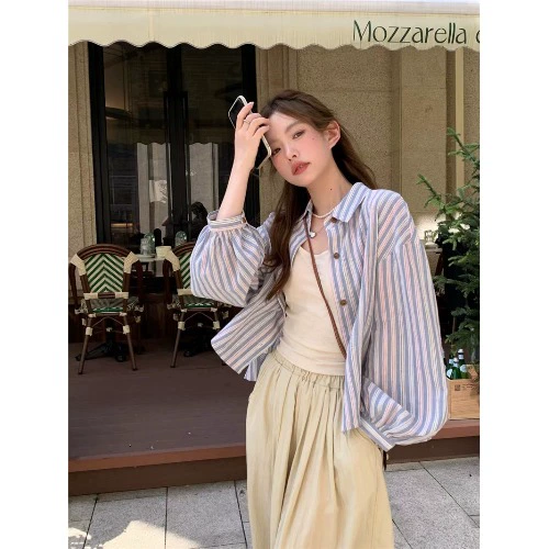| nameOriginal | Relaxed, irregular apricot long-sleeved striped shirt |
