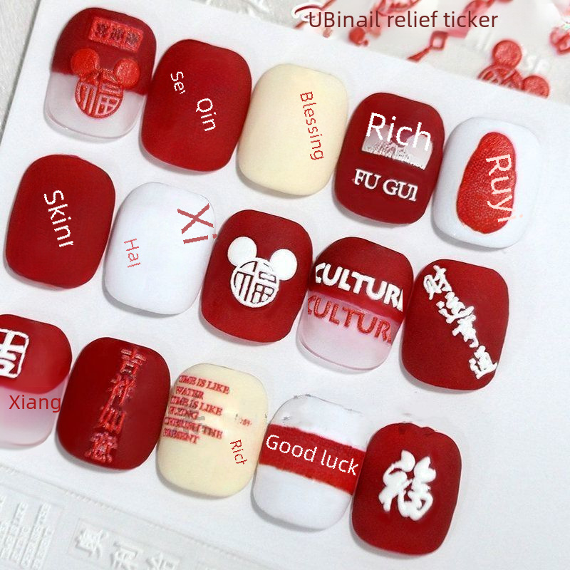 | nameOriginal | Relief Xingshi lucky nail stickers New Year national tide rich national style Xi character three-dimensional waterproof New Year nail stickers |