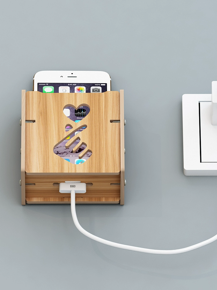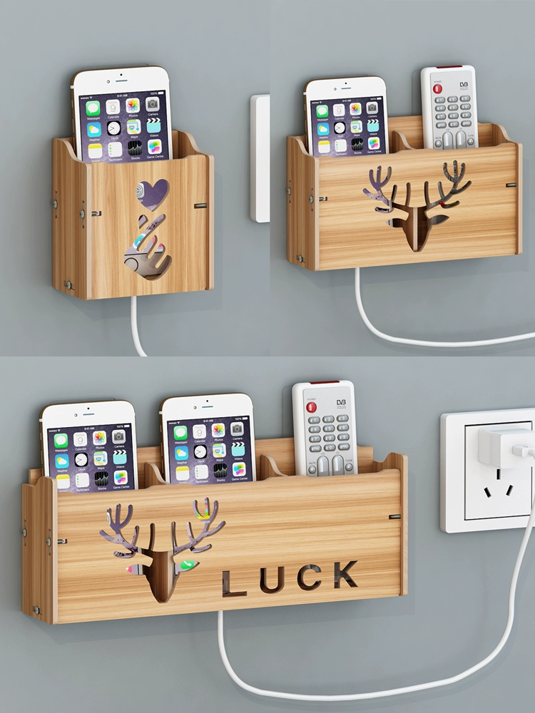 Remote control wall storage box without punching bedside mobile phone storage rack TV air conditioner wall-mounted wooden rack