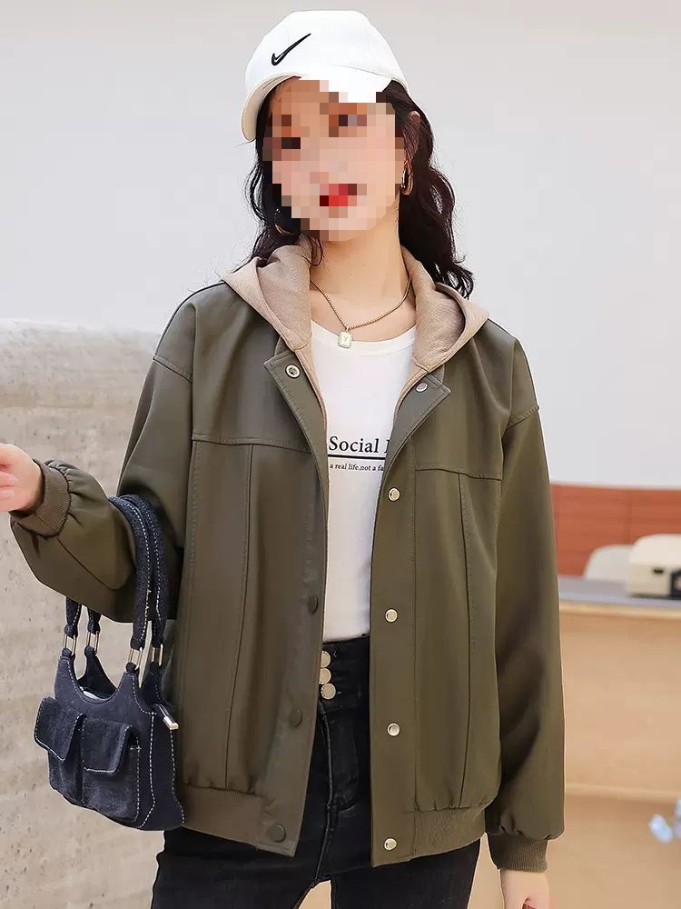 | nameOriginal | [Removable Cap] Leather Jacket Women's 2023 Spring New plus size Loose Casual Baseball Clothes PU Leather Jacket |