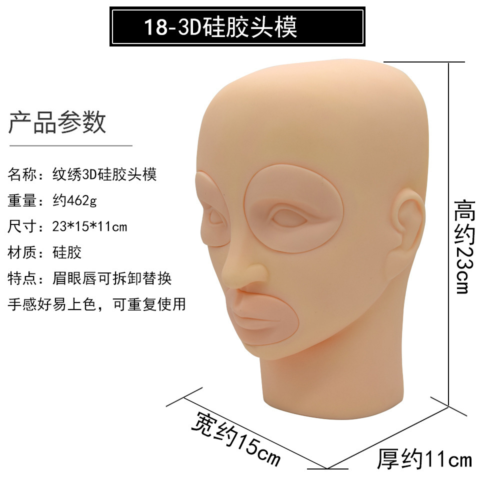 | nameOriginal | Removable Silicone 3D Tattooing Exercise Head Mold Tattooing Eyebrow Lips Floating Eyebrow Lips Novice Dummy Head |