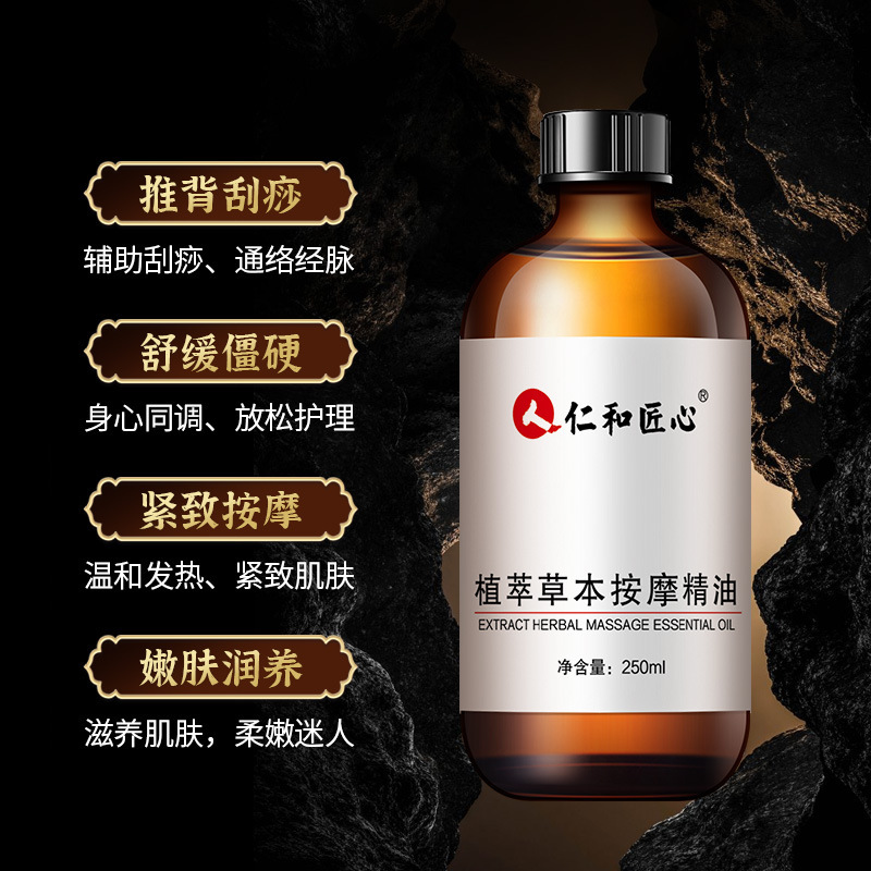 | nameOriginal | Renhe ingenious plant extract herbal massage essential oil SPA care Meridian dredging push back dehumidifying wash-free body pressing |