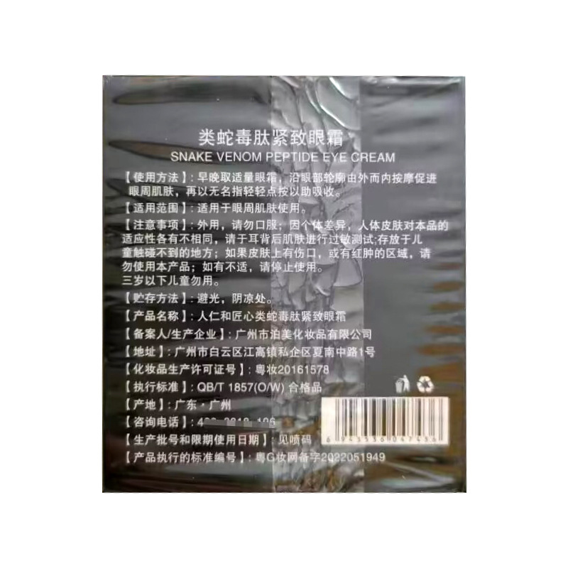 | nameOriginal | Renhe Ingenuity Snake Venom Peptide Nourishing Eye Cream Moisturizing, Hydrating and Tighting Improving Dark Circles and Bags under the Eyeses Eye Cream |