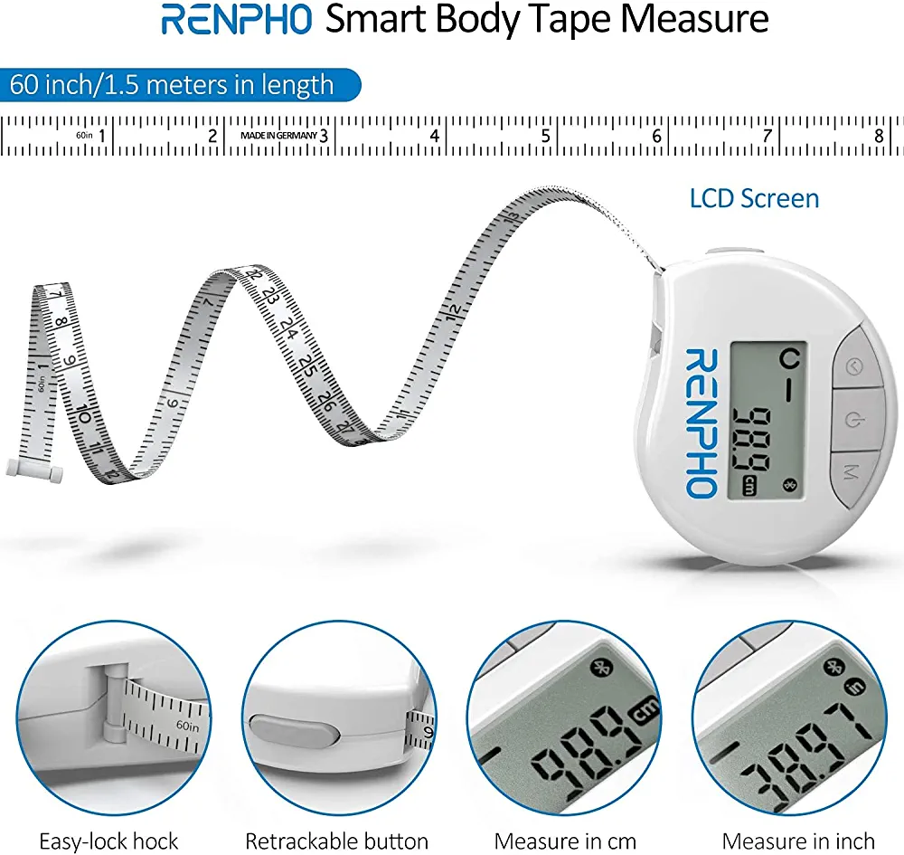 Introducing the Smart Tape Measure – the ultimate solution for tracking your body measurements progress over time. With its fully integrated Renpho App connectivity, this Smart Body Measuring Tape is perfect for fitness enthusiasts, personal trainers, and even expecting mothers-to-be.