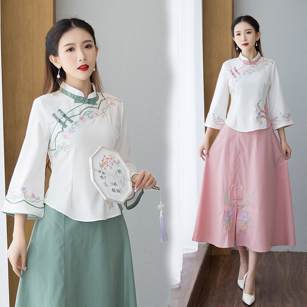| nameOriginal | Republic of China Style Girl Student Suit Chinese Style Improved Hanfu Cheongsam Top Cotton and Linen Two-piece Chinese Suit Tea Suit |
