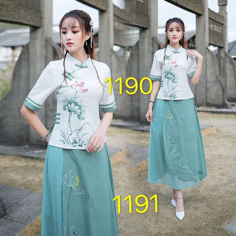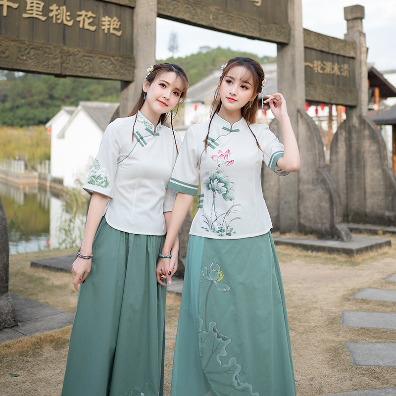 Republic of China Style Suit 2023 Summer New Style Modified Hanfu Republic of China Style Artistic Retro Printed Lotus Suit