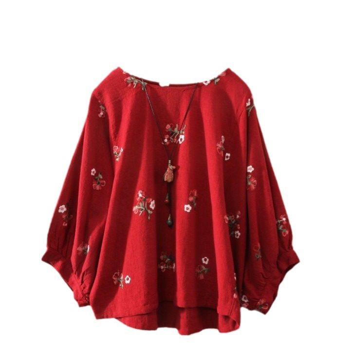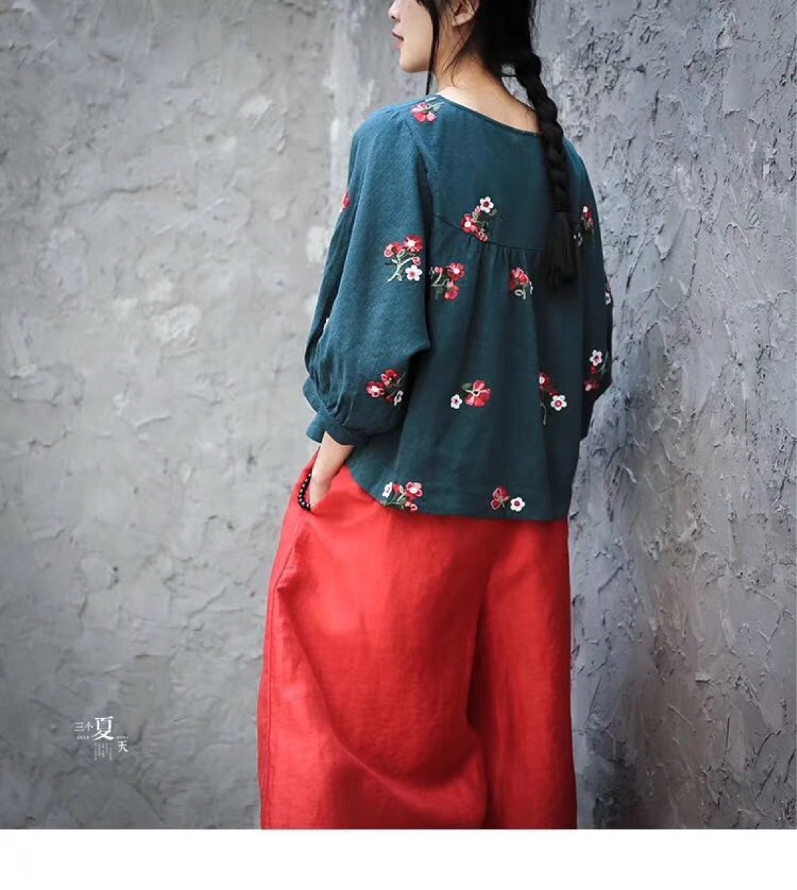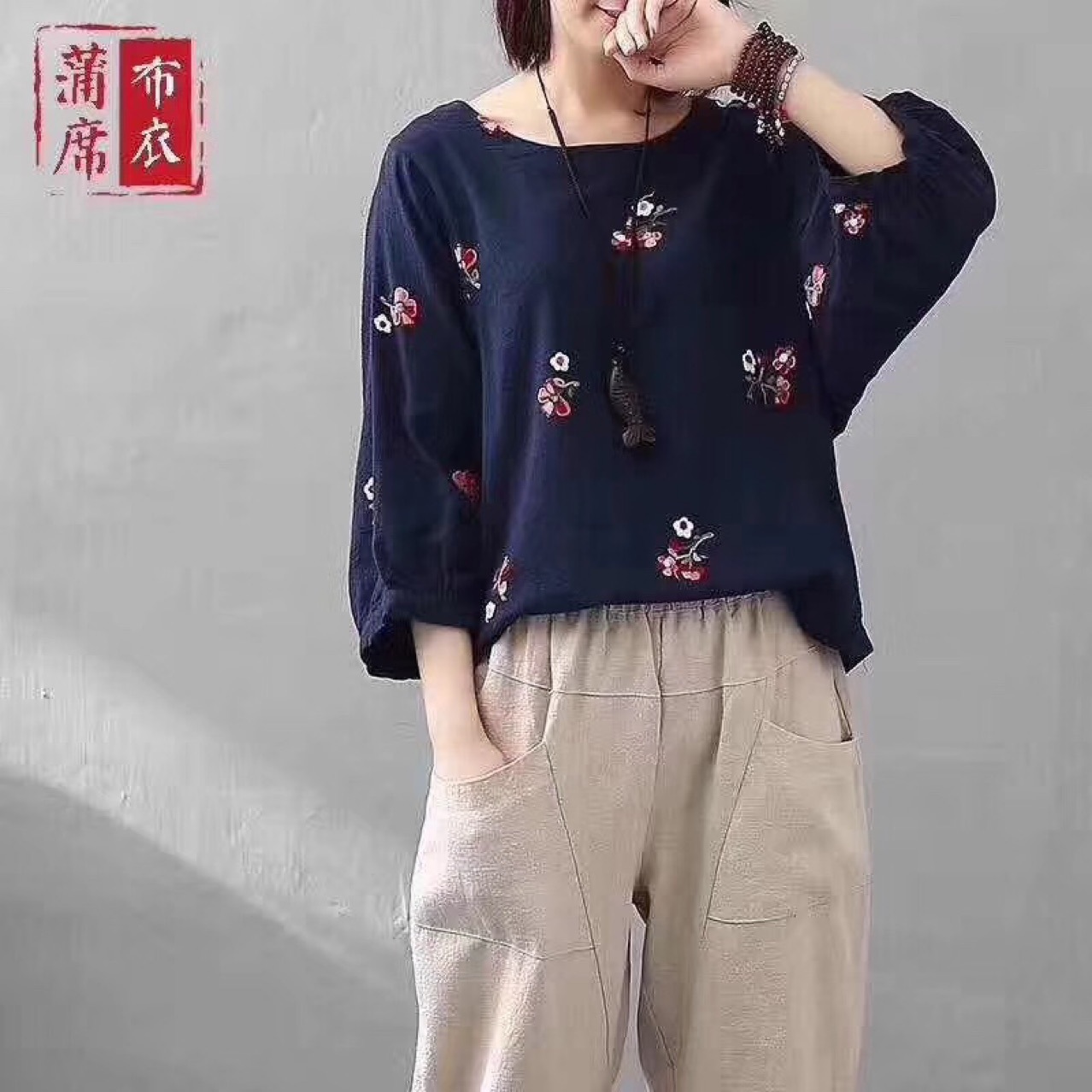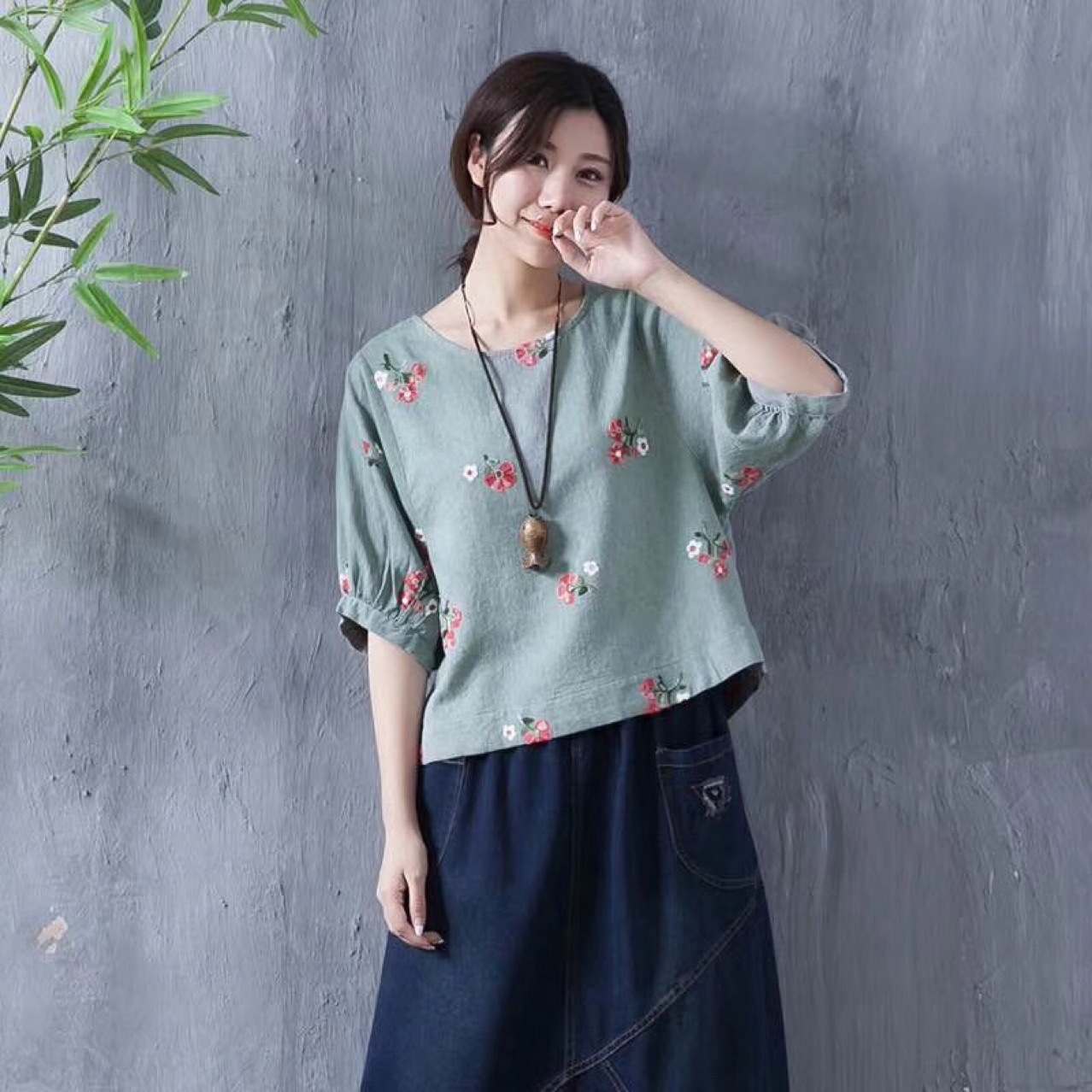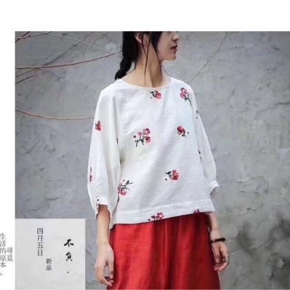 Republic of China Style Vintage Cotton and Linen Embroidered Summer Casual Sleeve Top
