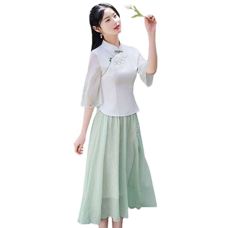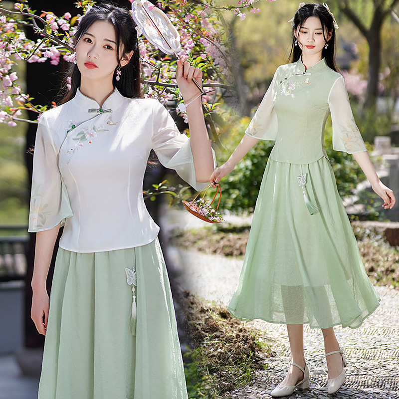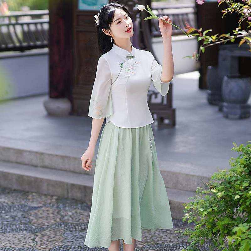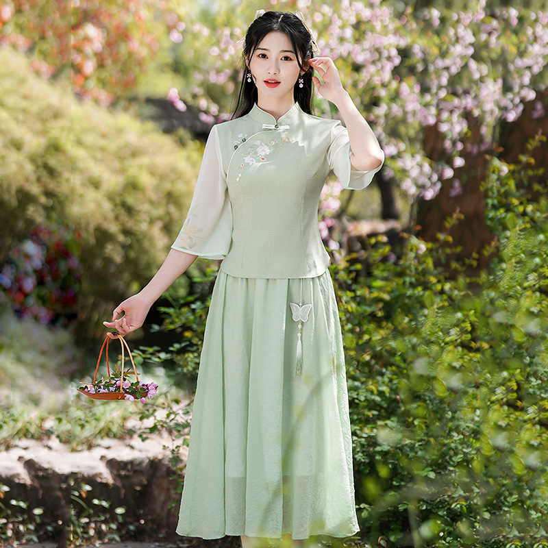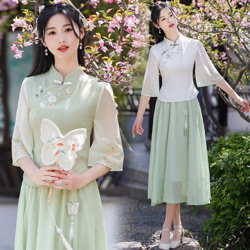 | nameOriginal | Republic of China Style Women's Clothing Chinese Style Button Top Set Chinese Style Tang Suit Women's Daily Improved Tea Artist Two-piece Set Spring |