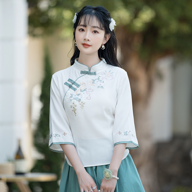 | nameOriginal | Republic of China Style Women's Clothing Improved Cheongsam Top Summer Cotton and Linen Chinese Zen Tea Clothing Hanfu Chinese Style Tang Suit suit |