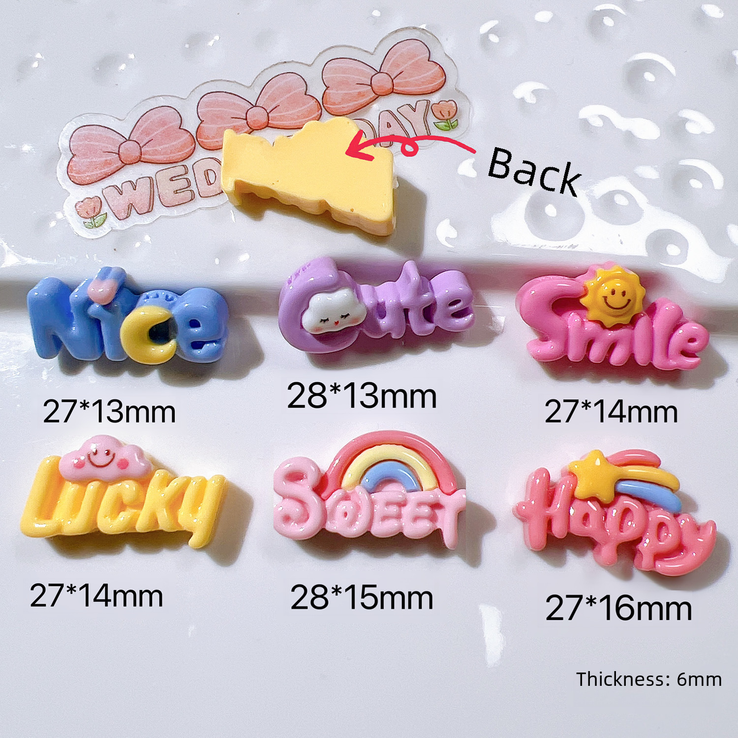 | nameOriginal | Resin accessories wholesale diy accessories handmade material shoe buckle cap patch cream glue accessories rainbow letter card |