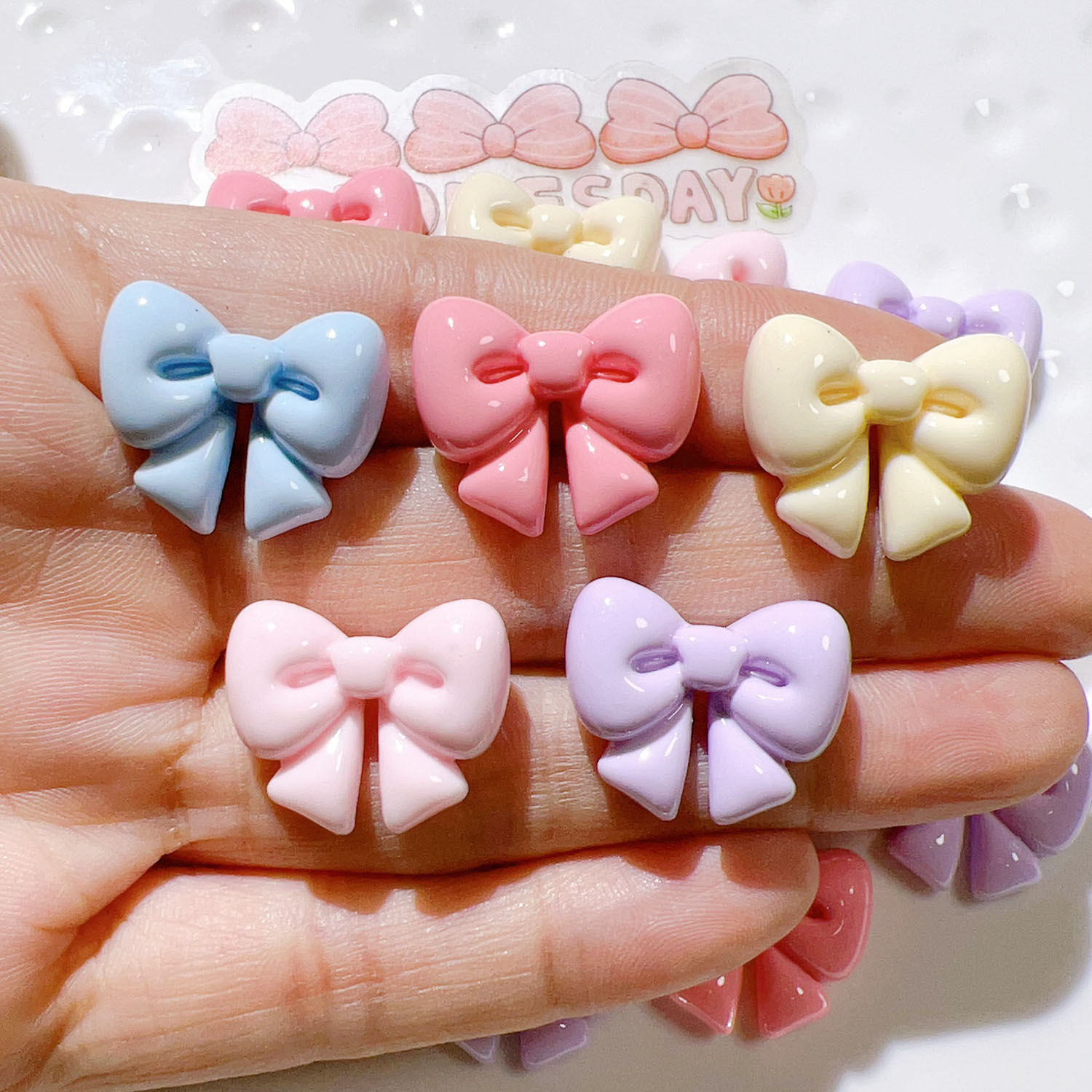 | nameOriginal | Resin jewelry accessories wholesale diy accessories handmade material shoe buckle hat cream sticker glossy bow |