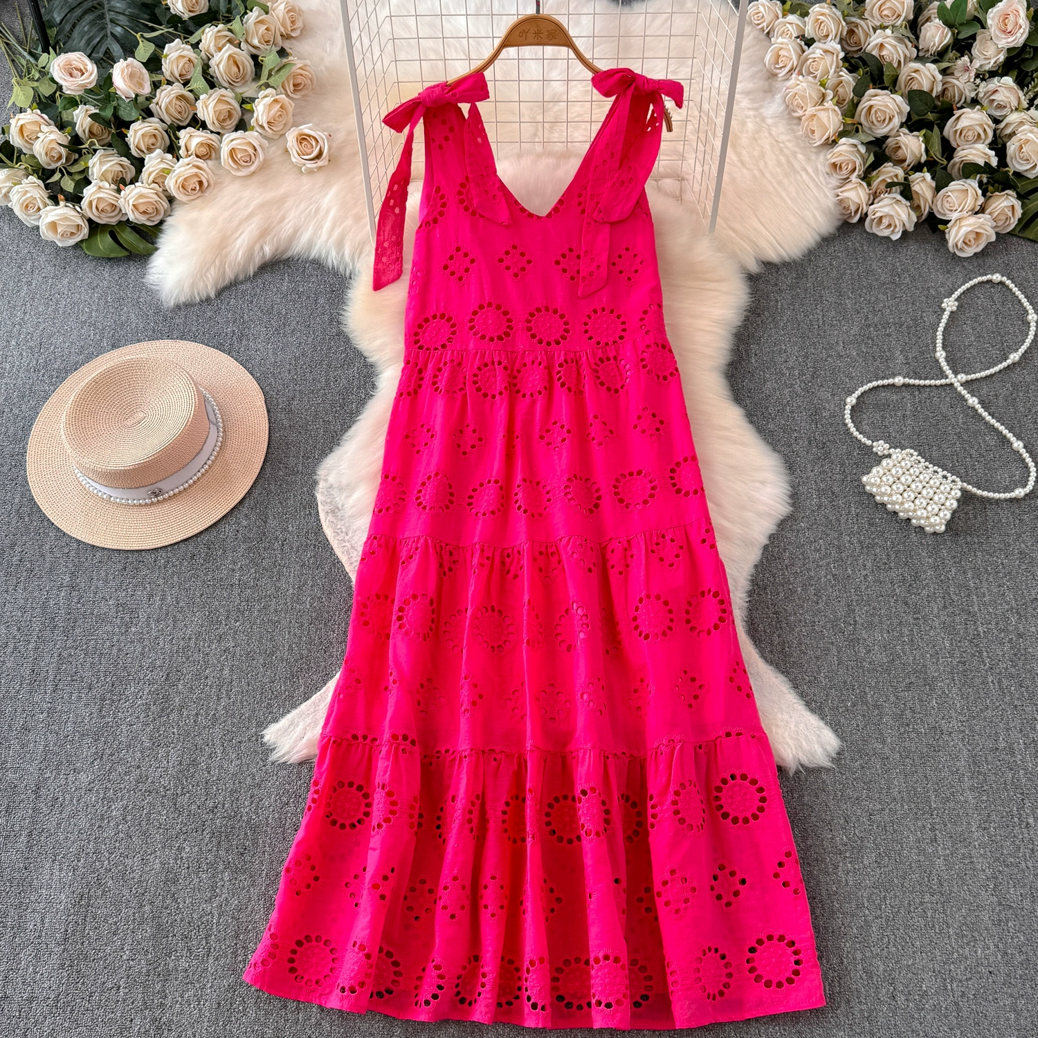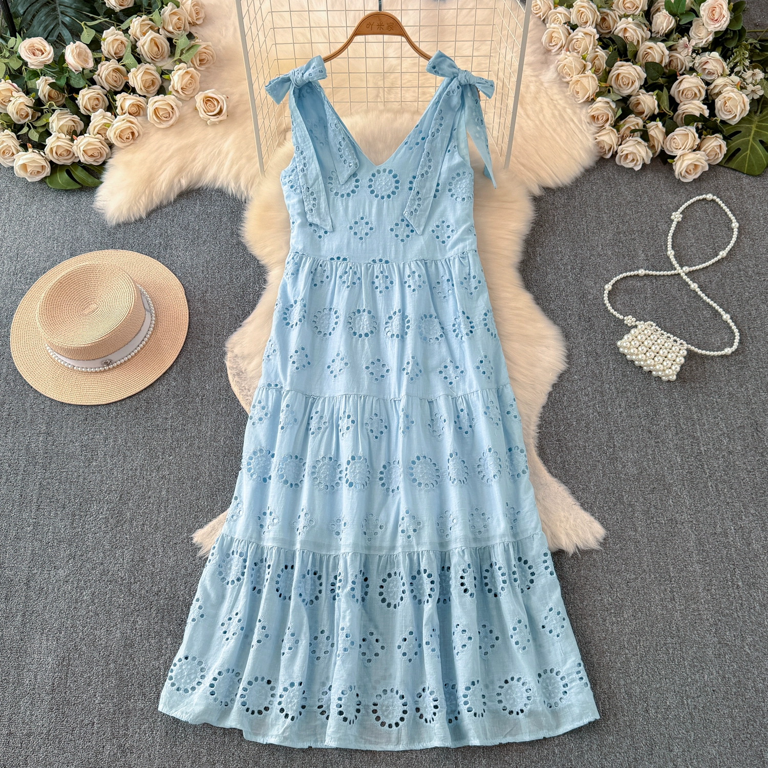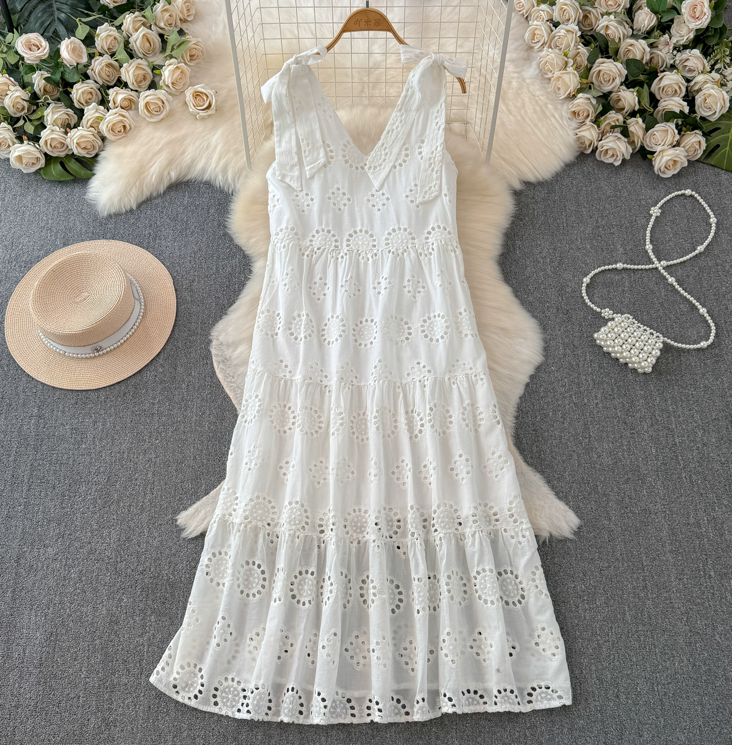 | nameOriginal | Resort style heavy industry crochet ruffle skirt women's summer French white dress long skirt niche hollow A-line skirt |