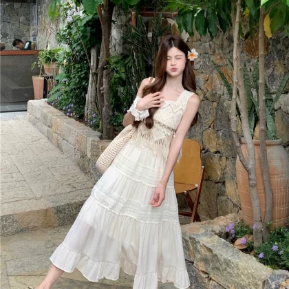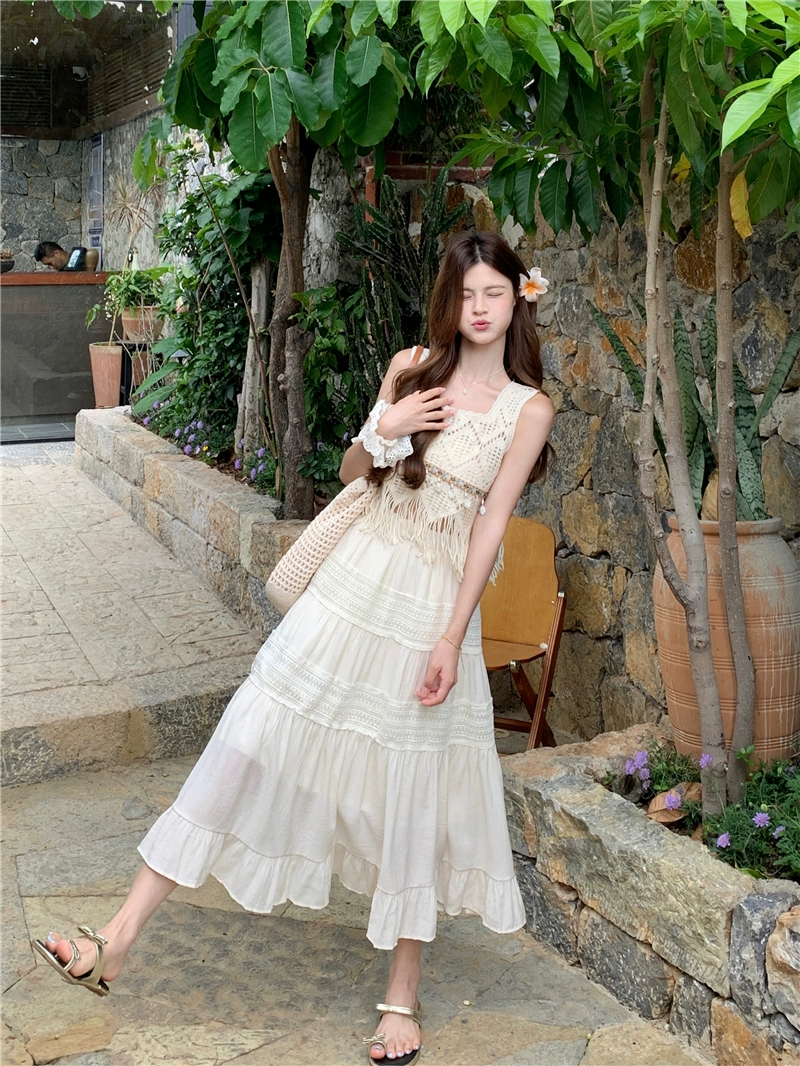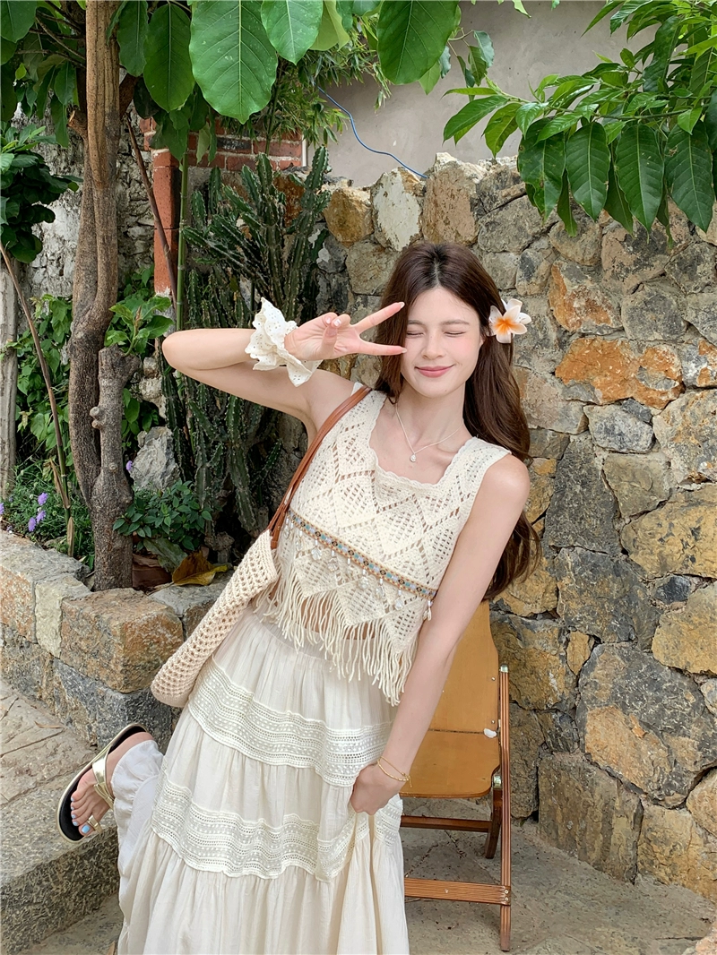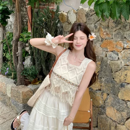 | nameOriginal | Resort style short chic hollow tassel white suspender belt |