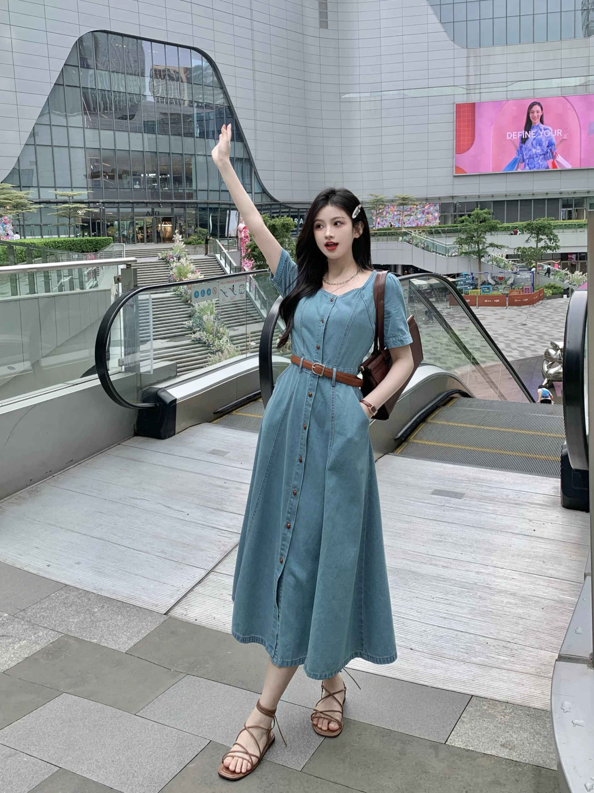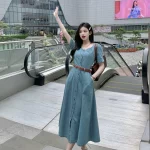 | nameOriginal | Retro A-line long skirt for fat girls to cover belly and make them look slimmer with short sleeves |