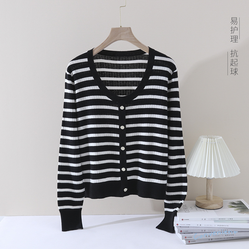| nameOriginal | Retro age-reducing striped sweater counter quality 2024 early spring new contrast color U-collar sweater for women |