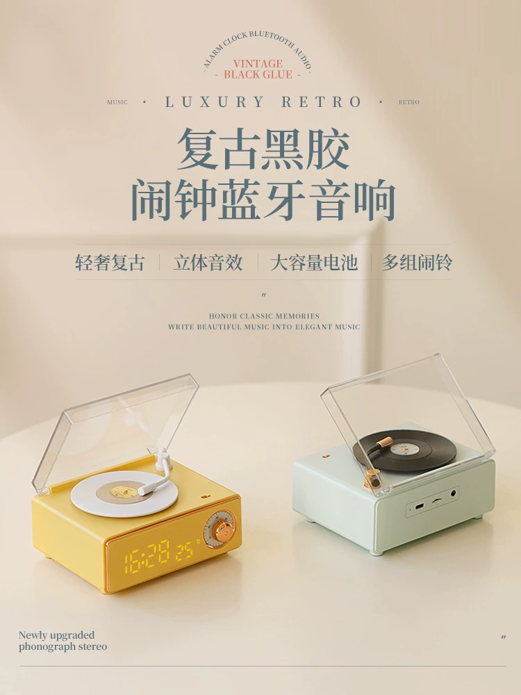 | nameOriginal | Retro alarm clock Bluetooth speaker wireless audio small mini subwoofer high quality vinyl record player gift |