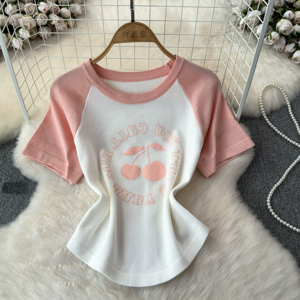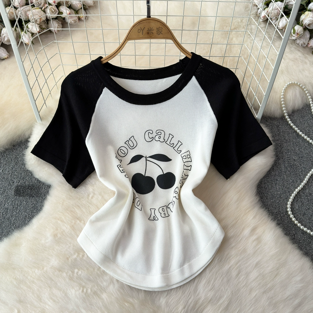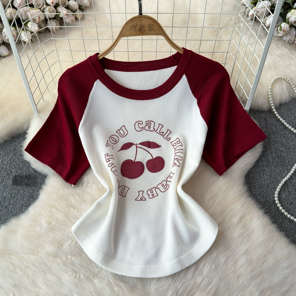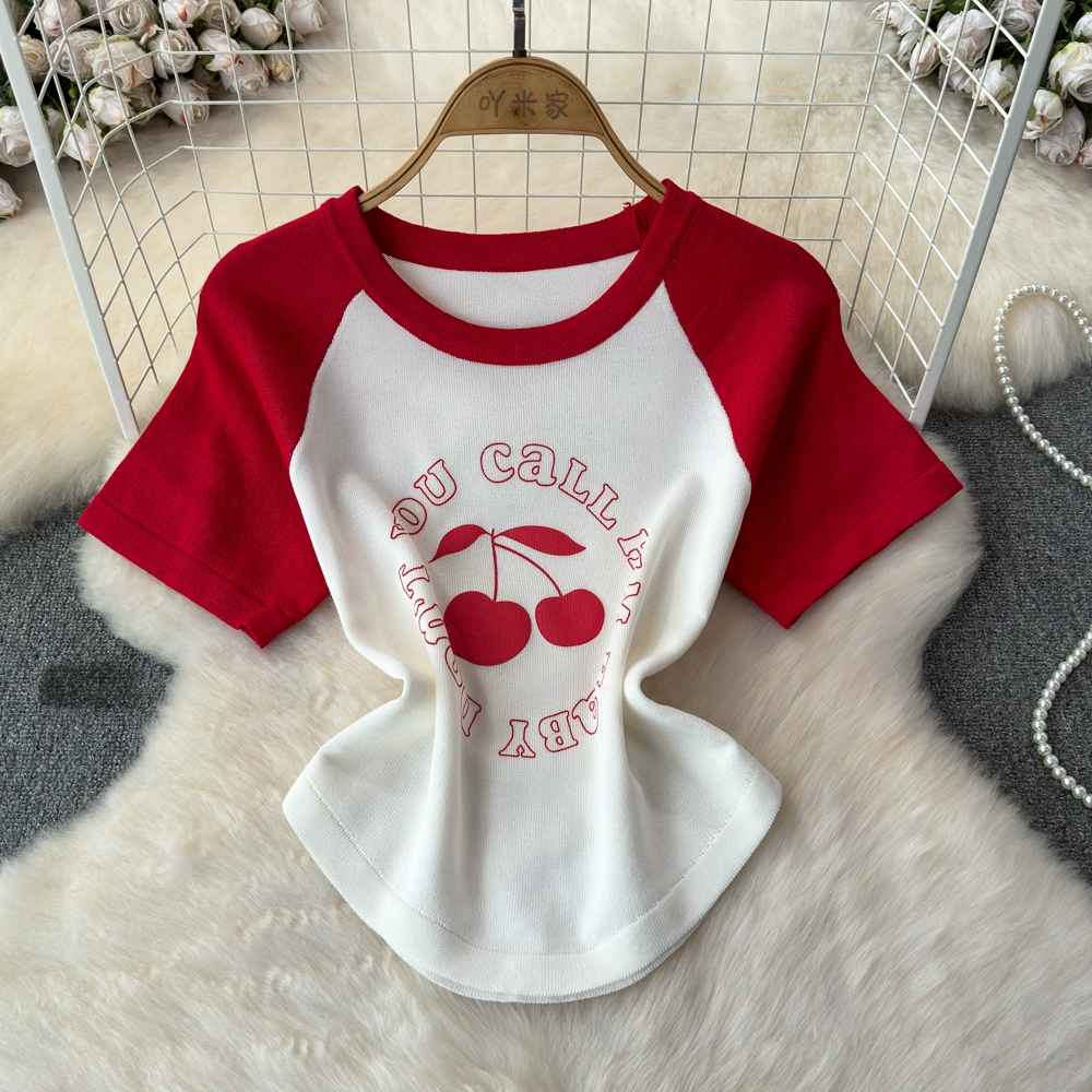 | nameOriginal | Retro American cherry print t-shirt women's summer small design niche slim fit versatile short-sleeved top |