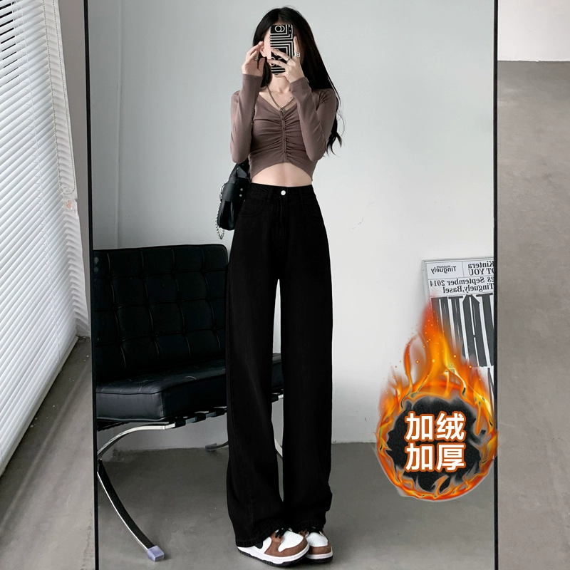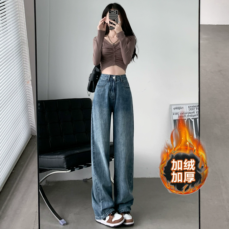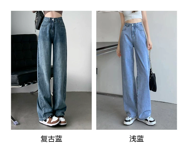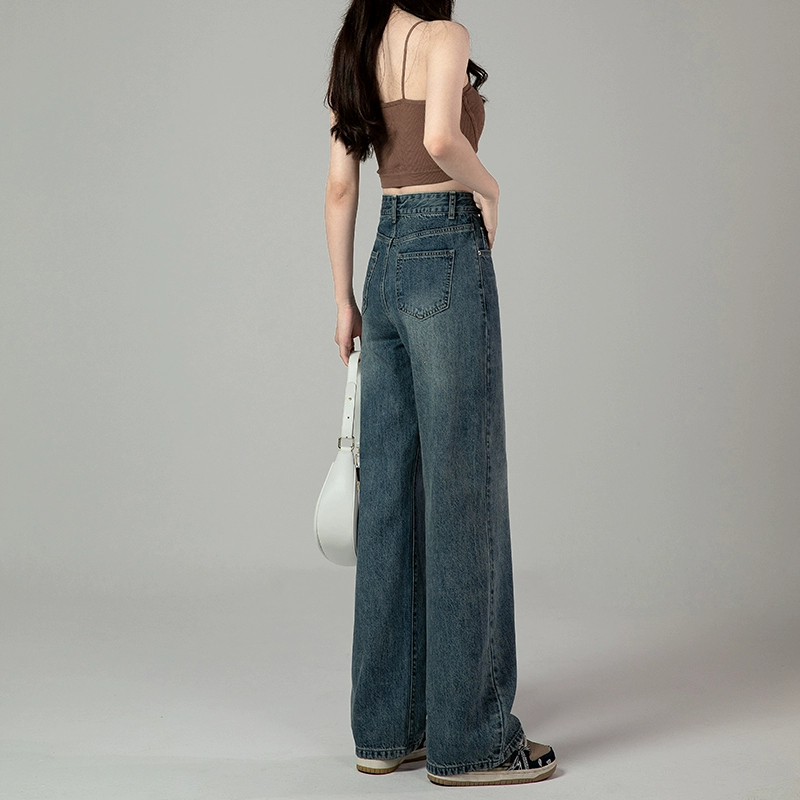Retro American high-waisted straight wide-leg floor-length jeans