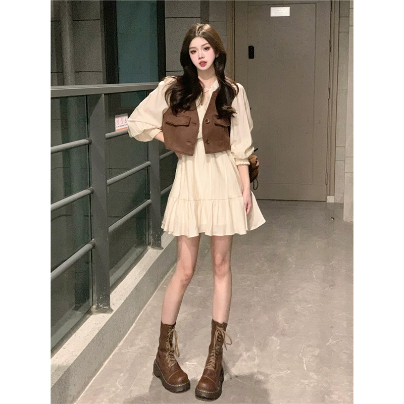| nameOriginal | Retro autumn wear brown vest long sleeve suit skirt |