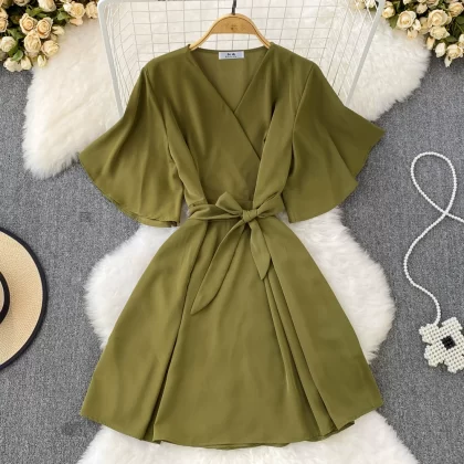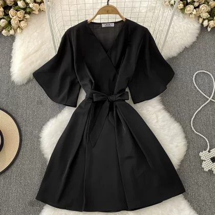 | nameOriginal | Retro bell sleeve a line dress with bow tie |