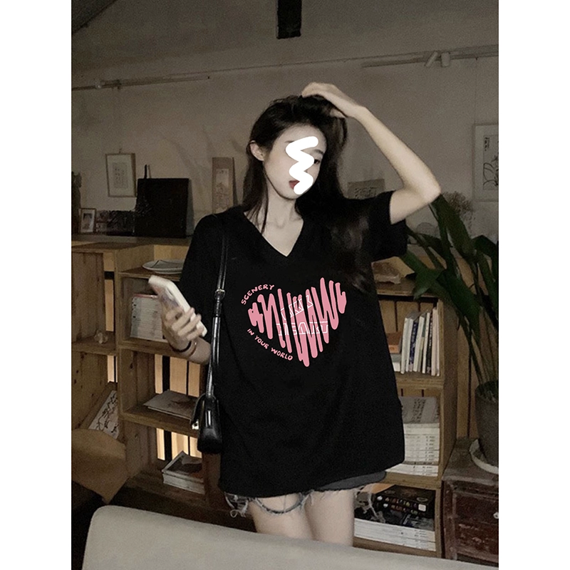 | nameOriginal | Retro black 2024 new v-neck loose short-sleeved T-shirt |