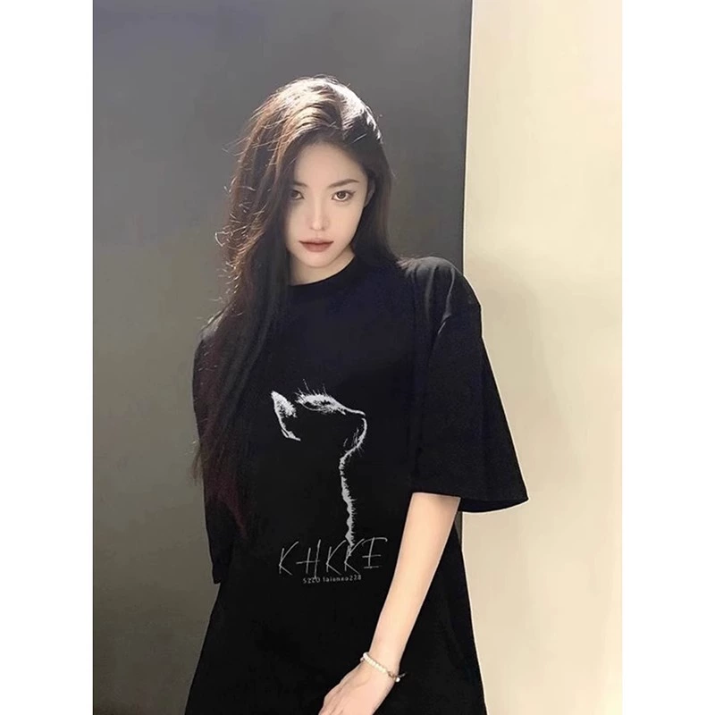 | nameOriginal | Retro black cat short sleeve oversize cartoon |