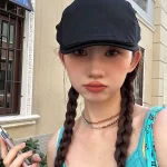 | nameOriginal | Retro black disco autumn women's big head forward hat |