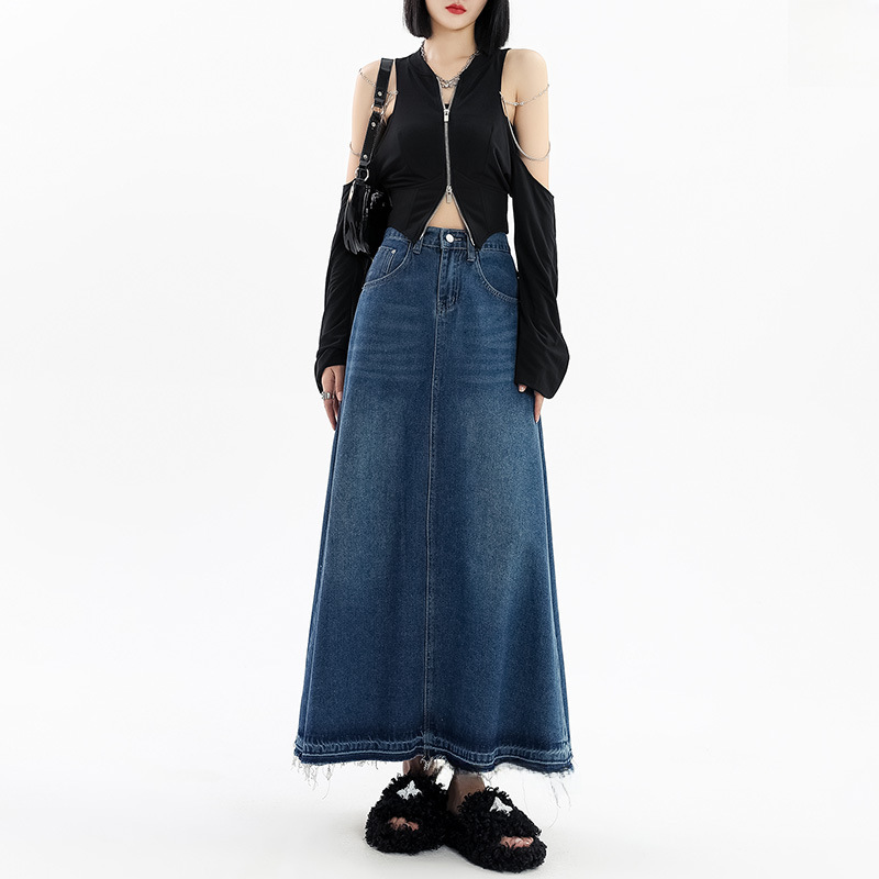 | nameOriginal | Retro blue elegant all-match Denim long skirt women's tassel edge niche design sense slimming slimming skirt |